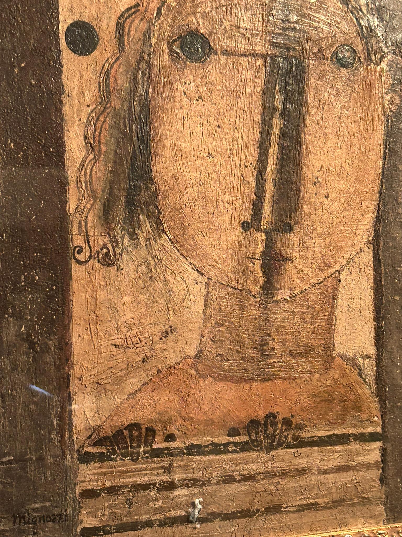Alle anzeigen"Figura Frontale" di Antonio Mignozzi - Olio/Affresco su Tela - Italia 1970/