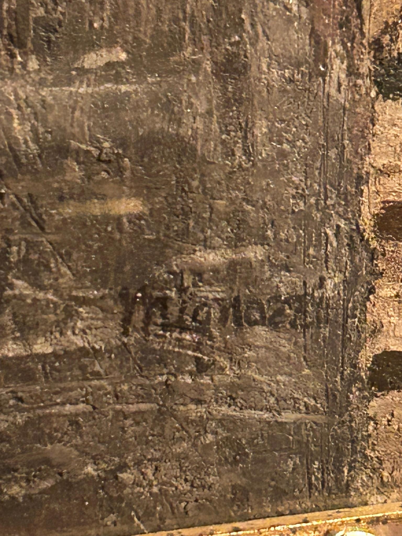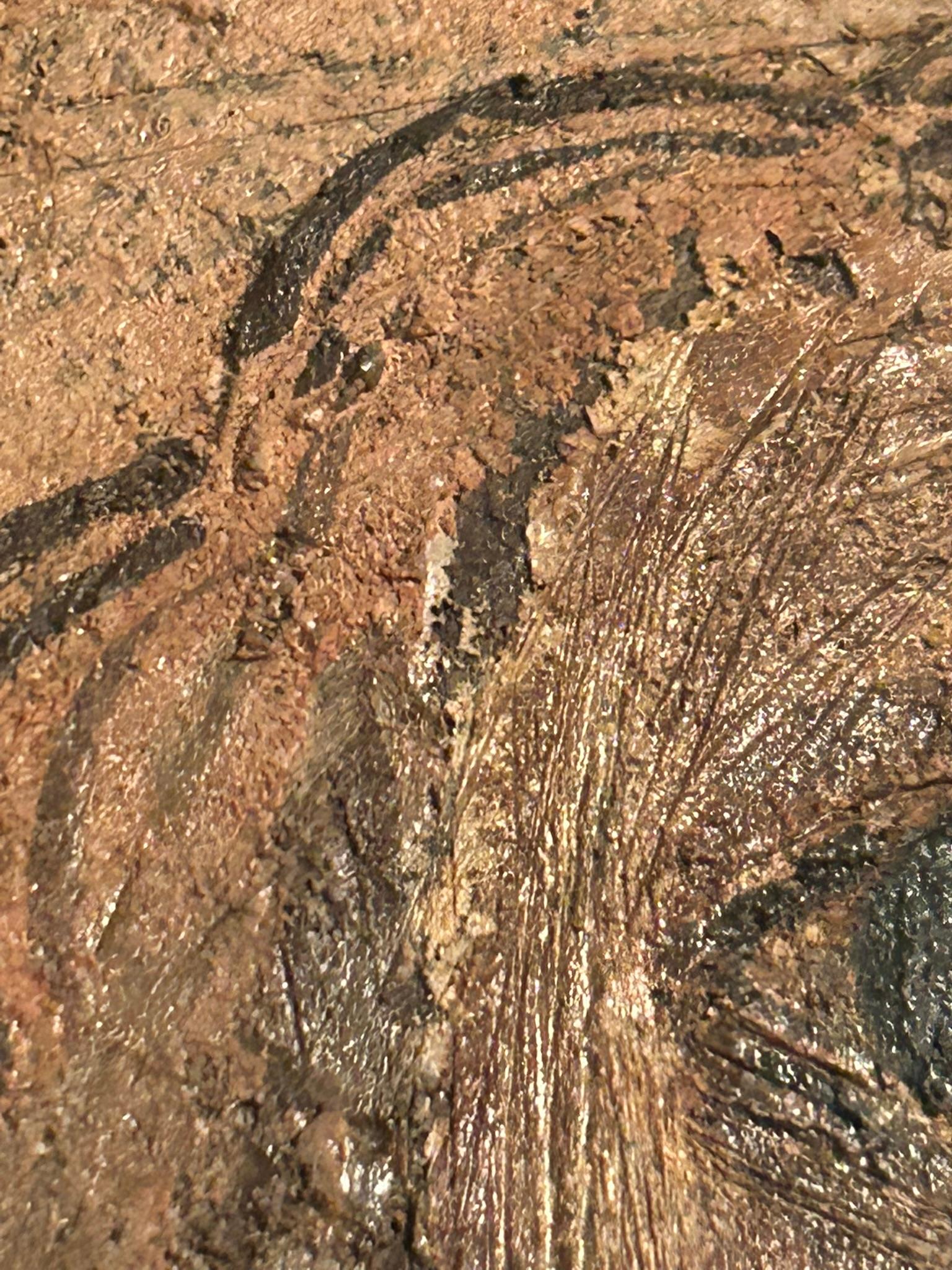 L' opera sfoggia una superficie che ricorda questo effetto materico (vedi graffi, tracce, struttura quasi "ruvida"), quindi coerente con la tecnica dichiarata dell'artista.