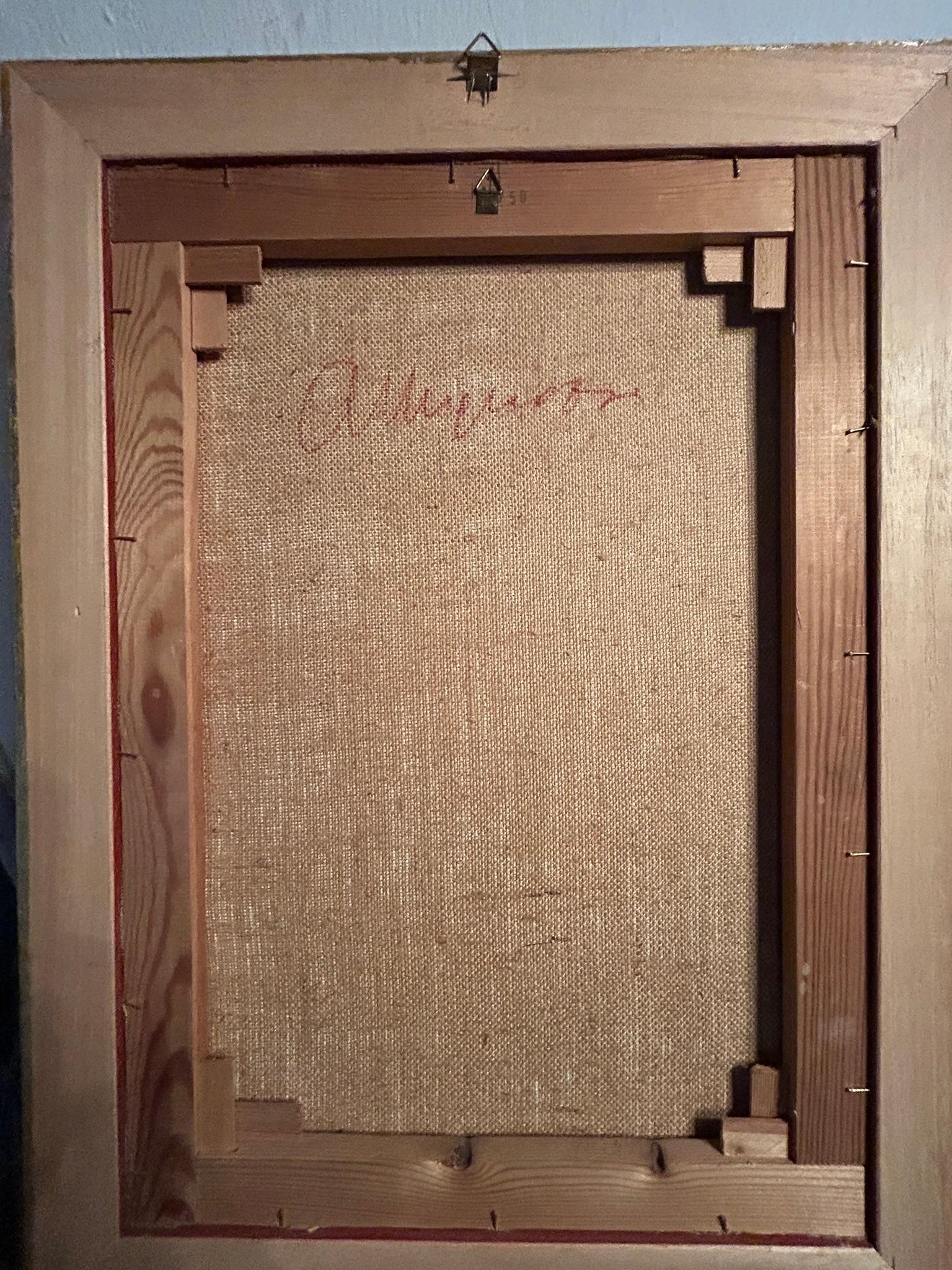 "Figura alla Finestra" von Antonio Mignozzi - Affresco su Tela - Italia - Anni 70