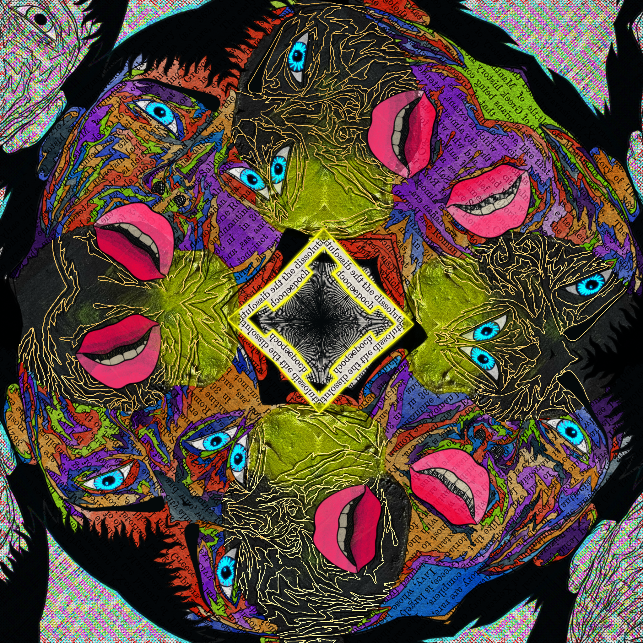 Erasure poetry + cut-up + continuous line drawing + collage + kaleidoscope = kaleidoscopic erasure poem. A kaleidoscopic erasure poem is a sigh, a sigil, a digital/traditional hybrid, a (hyper)textual parallel universe, a vortex of meaning. Shatter the word & perhaps we’ll know which way to go next?