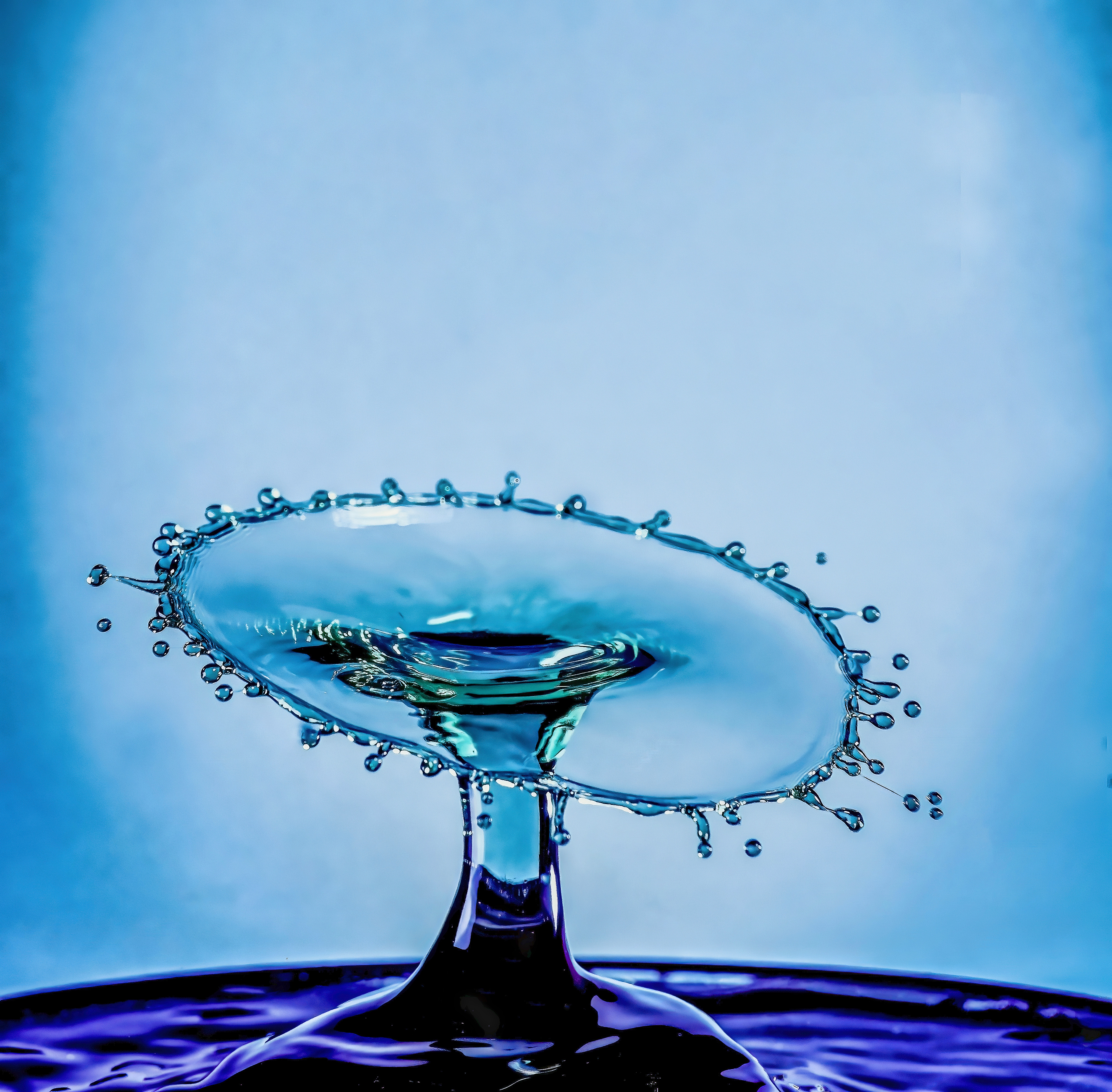 Water drop or waterdrop photography is a type of macro photography where a drop of water is released followed milliseconds later by one or more additional water drops. The first water drop creates a stem that the second water drop (hopefully) hits - creating ephemeral abstract shapes that last less than 1/35000 of a second.