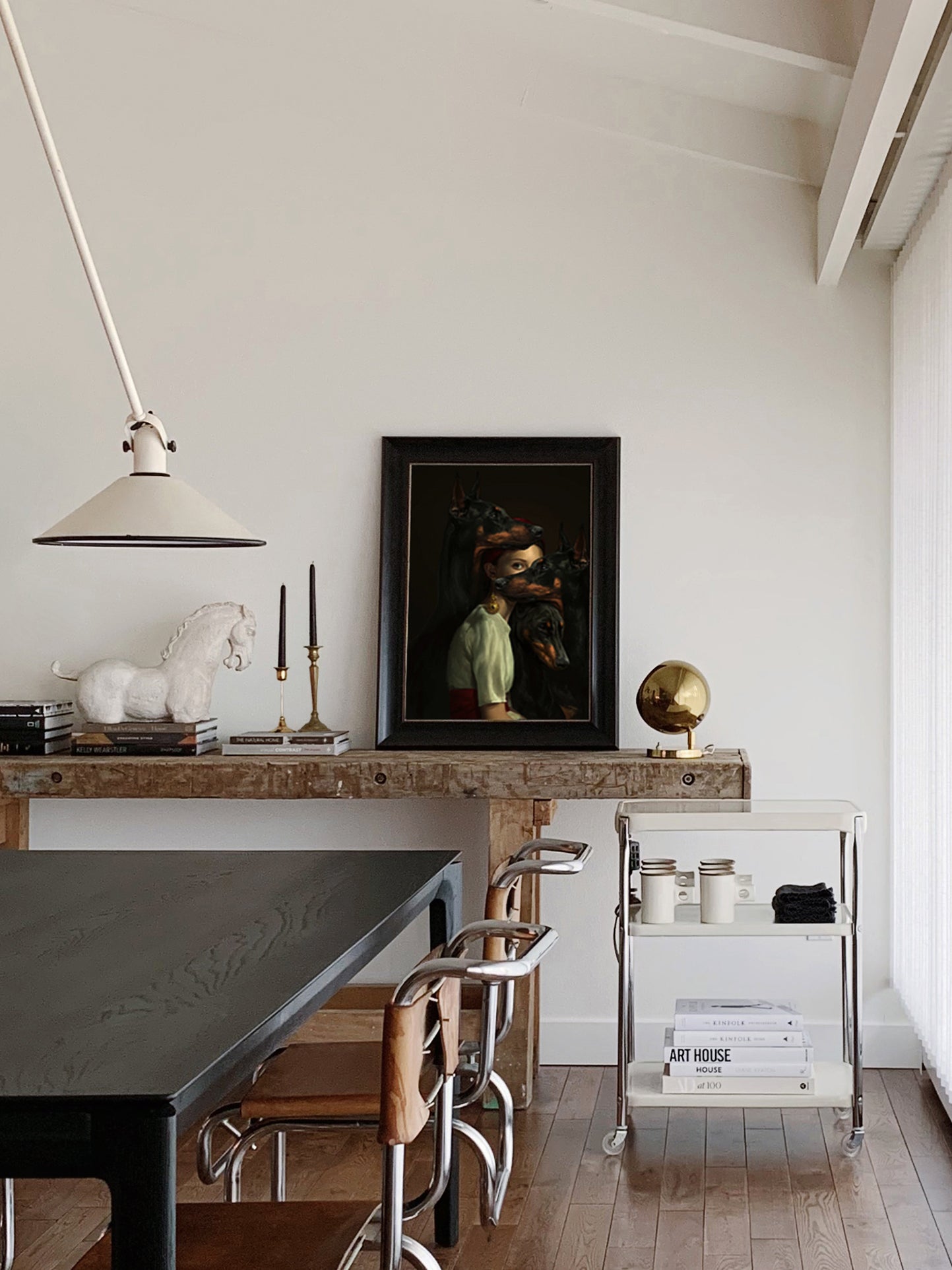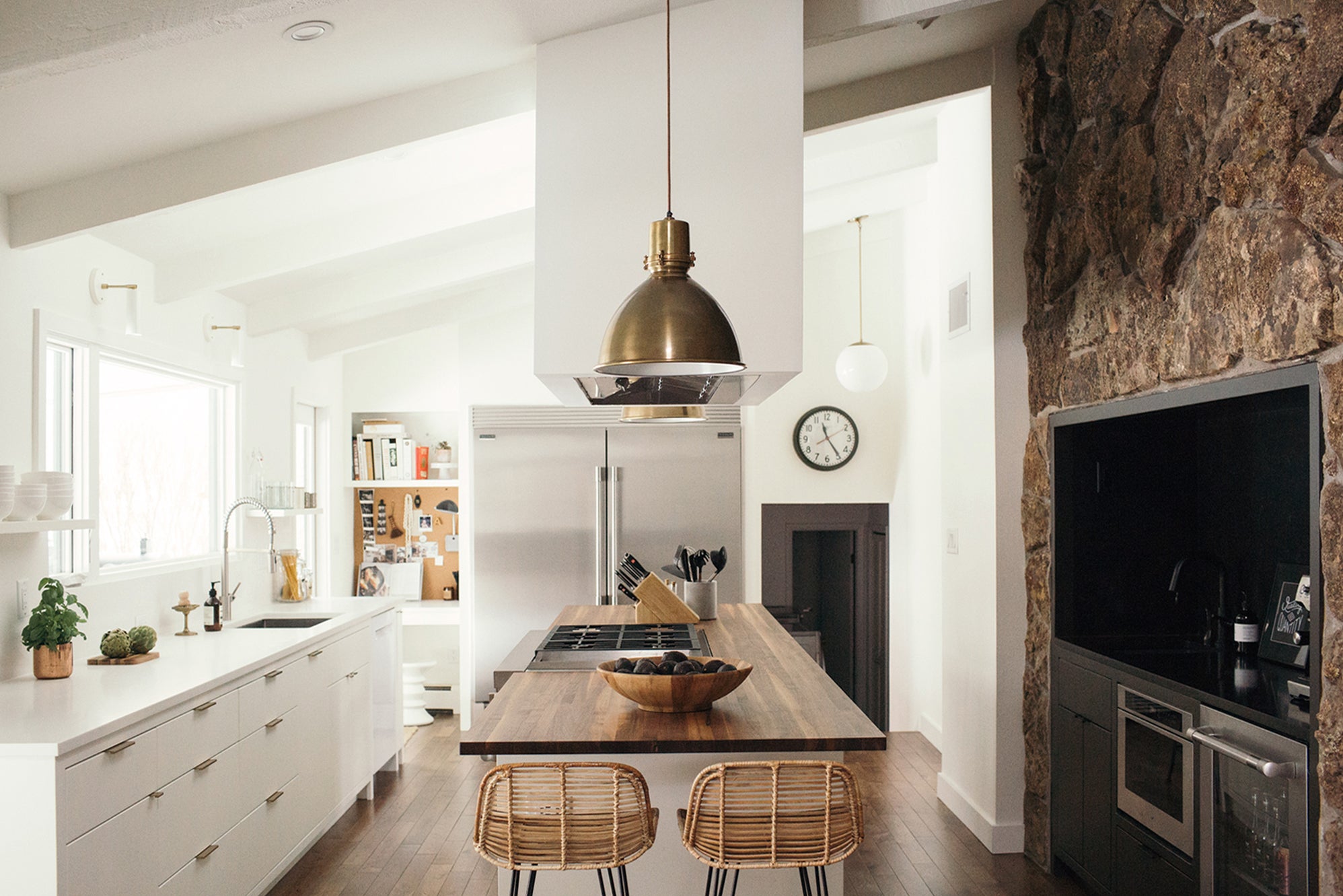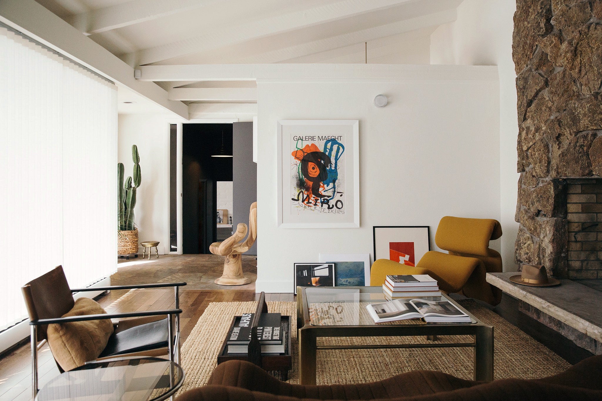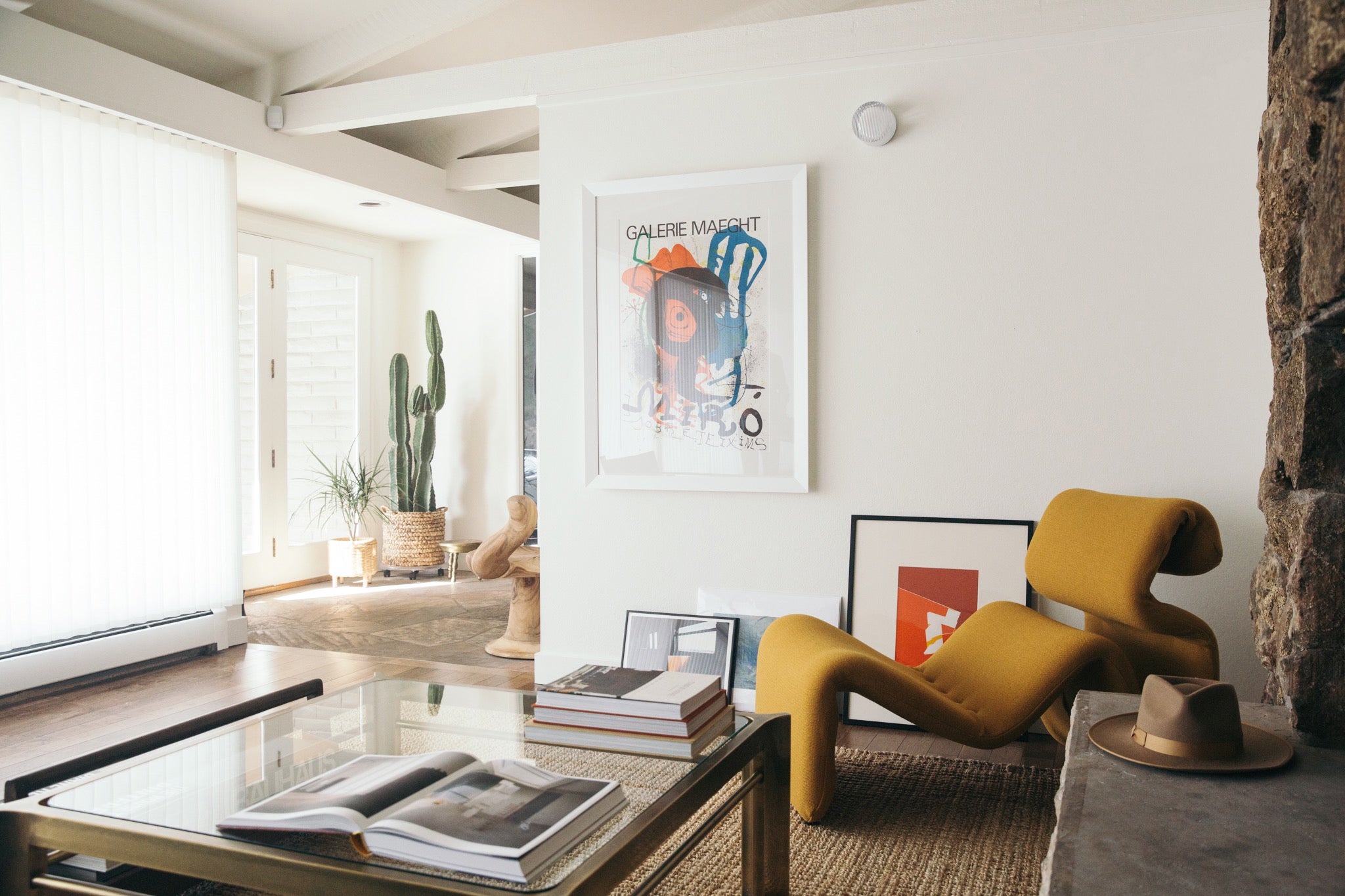 Over a period of 7 years, Laura Arledge (Designer and Founder of State) and her husband Scott (Builders Craft Construction) transformed their 1967 raised ranch from an 80s-remodeled, appendaged over time, faux painted, rainbow-tile-in-bedrooms, resemblance of a mid-century charmer, back to its original glory and then some. The overly distracting walls and flooring were wiped clean to a neutral, crisp palette, highlighting the 17ft moss rock wall with double-sided fireplace and serving as a backdrop for their rotating curation of furniture and art (including a weaving installation climbing the corner of the Family Room ceiling by local artist Sarah Neubert, prints by Brooke Holm, Martine Johanna, Robin Eley, Joan Miro, and some of her own art).