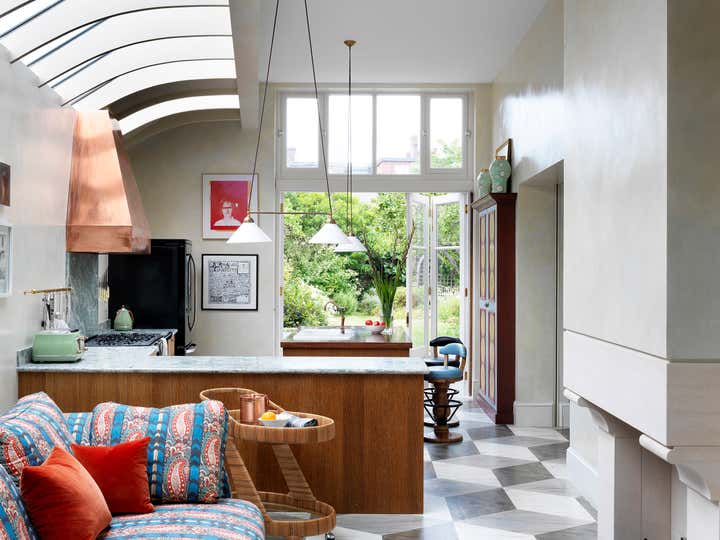 The young artist couple who owns the property wanted something completely unique that reflected their personalities with lots of imagination and colours. We designed many bespoke pieces of furniture and worked with a specialist paint team to develop original finishes. It was also key that the house worked practically as a family home.
