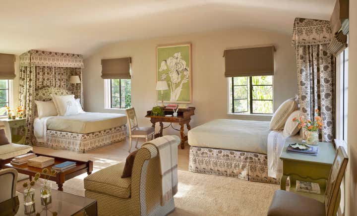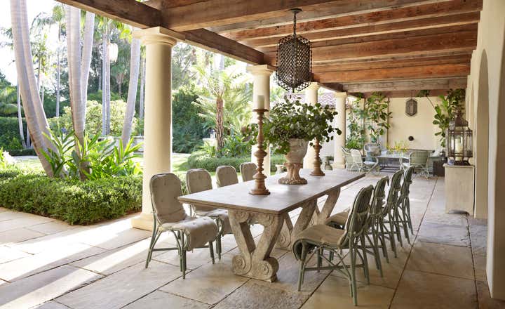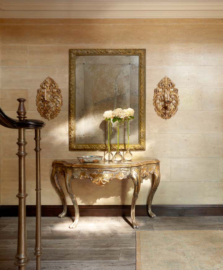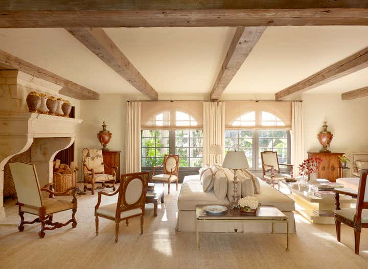 This is a marvelous house built in the 1920’s in a restrained Mediterranean style, as though it were a simple yet spacious house in the Italian countryside. The original beautiful architectural details and proportions had been compromised in a renovation, so we chose to peel back and simplify for this large modern family. A great deal of attention was paid to all the colors throughout the house—the colors needed to be subtle, just one part of the whole look and feel. We chose a classic, matte-finish limestone paint that looks wonderful combined with the new floors of wood and reclaimed terra-cotta as well as the handwoven kilim rugs of strie sisal that were used throughout. They all work together to form a beautiful but low-key background for the mixture of furnishings gathered for the house.