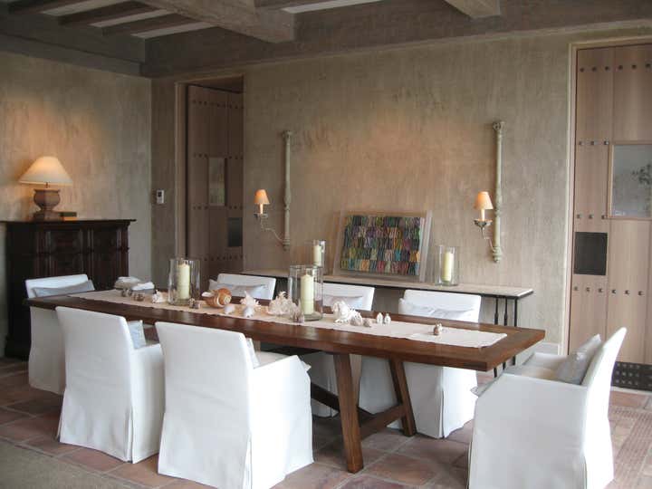 An Andalusian style beach front residence of Macedonia stone, stucco, reclaimed Douglas Fir and antique terra cotta was designed and built from the ground-up. Cool colors were selected for the interiors to offset the hot climate of Florida. This home reflects a relaxed but elegant style.