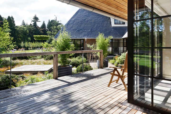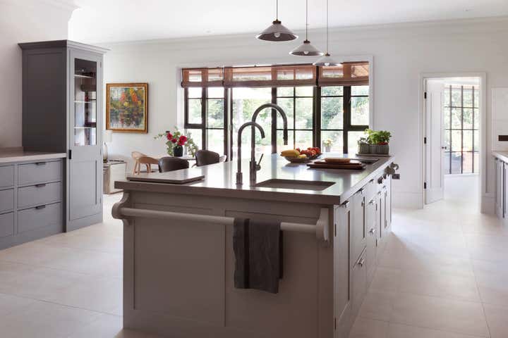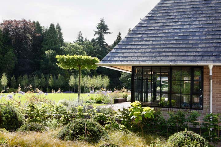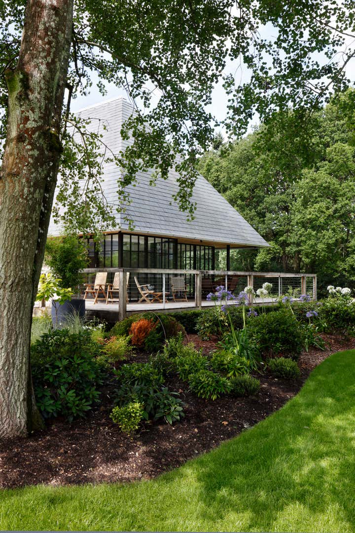 A handsome slate roof sets the tone for the project and fills the sky-line, responding to the scale of the surrounding trees and lending some tradition to the expansive volume of the house.
