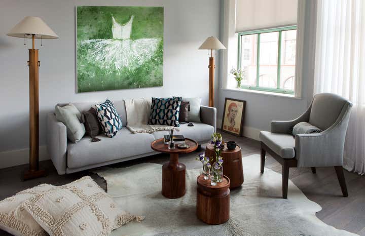 In this downtown Manhattan loft, we played with neutral tones, warm woods and pops of color to give our creative clients a home filled with depth and character.