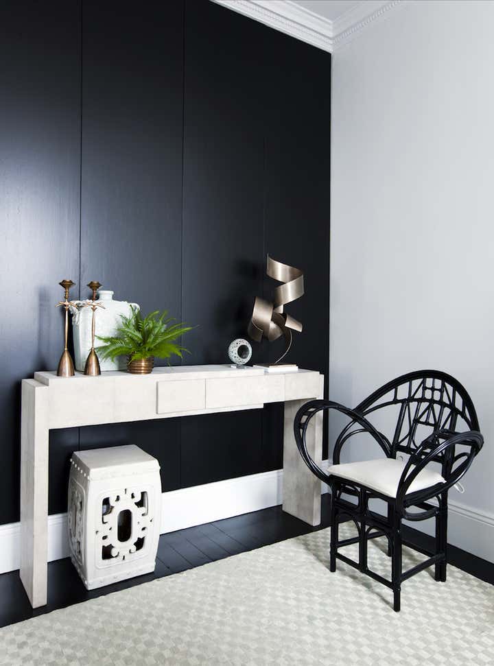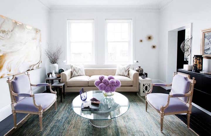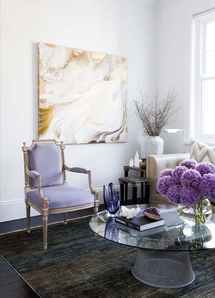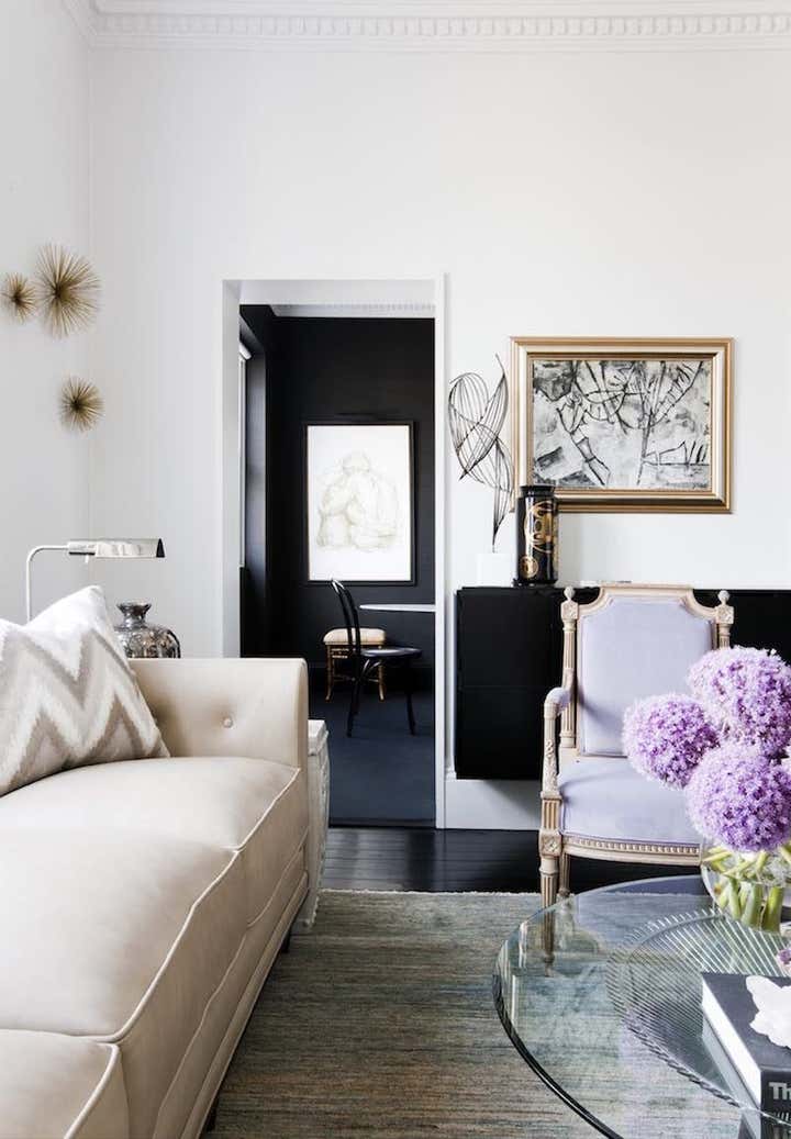 This Art Deco apartment is treated to a crisp black and white backdrop, creating an elegant and understated space. A diverse mix of furnishings and artwork shine, with accent colors in lilac and warm gold. “With their ebb and flow, Brendan Wong’s interiors keep you on the edge of your seat” (Belle Magazine).