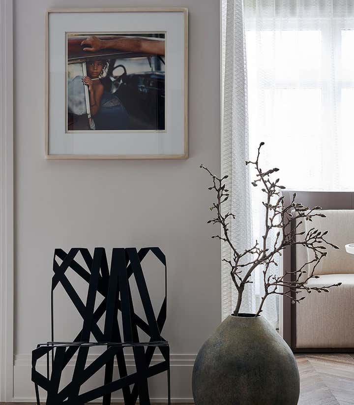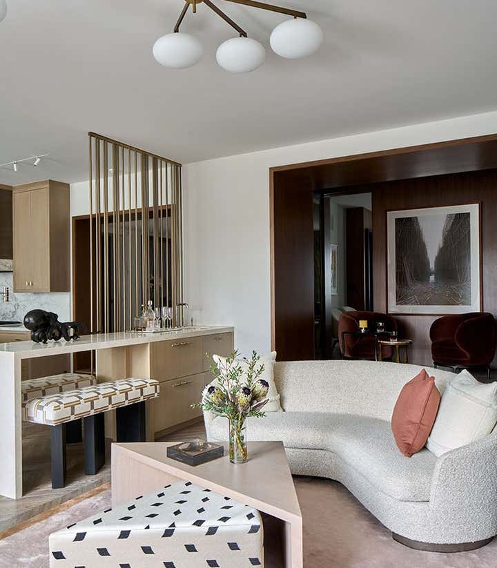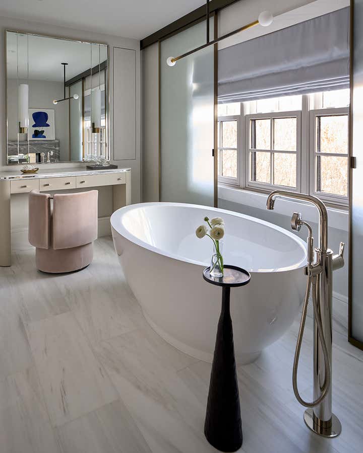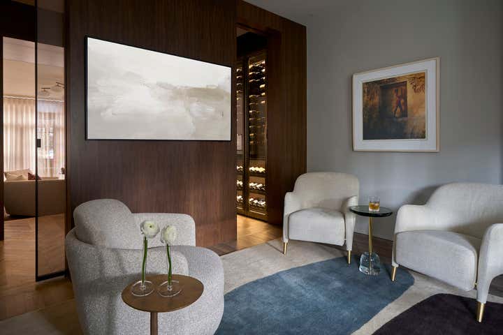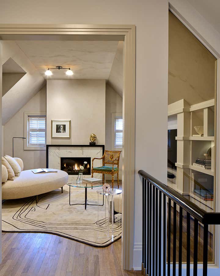 With their children grown, the clients wanted to update their traditional floor plan to reflect a new way of living. On their wishlist, was a complete reinvention of their second floor to reclaim unused bedrooms and create a private suite of rooms as well as a dedicated wine lounge on the main floor, and a home studio on the upper floor.