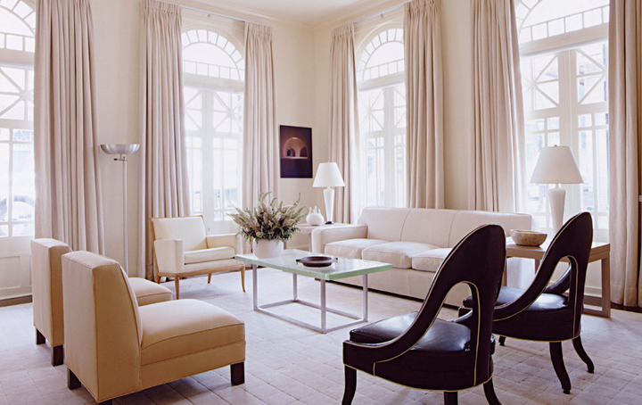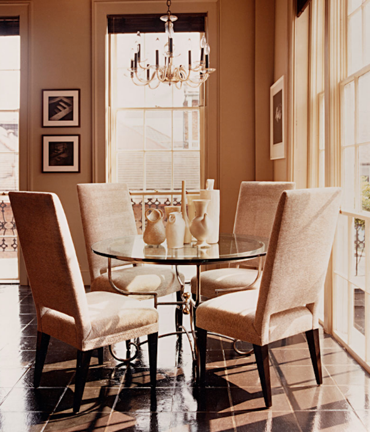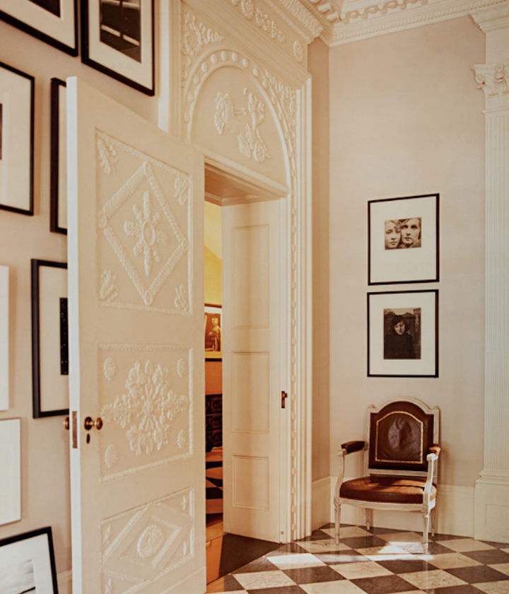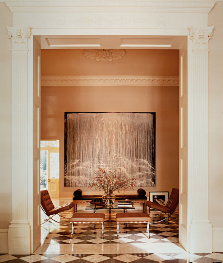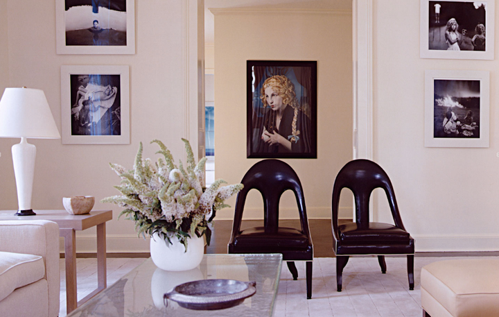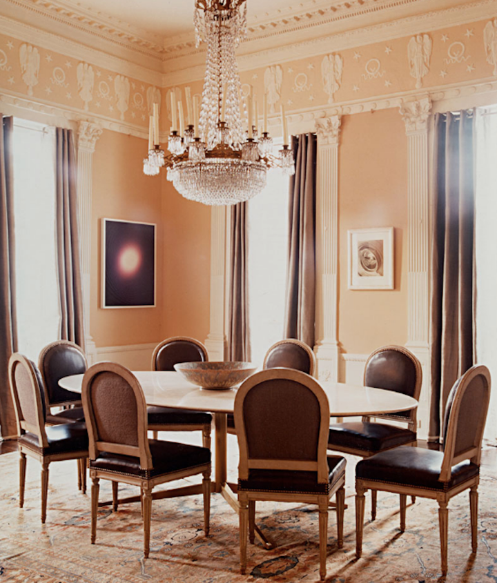 The interior design for this 1828 French Empire mansion attempts to bridge the gap between the existing elaborate neoclassical millwork and the owner’s outstanding collection of contemporary painting and photography. An eclectic mix of Louis XVI, Empire, Biedermeier, 1920’s to 1940’s modern and contemporary upholstered furniture co-exist within the art filled walls. A range of neutral colors was chosen for walls, rugs, upholstery and curtains to complement the black and white photography and to highlight the paintings. The interior architectural renovations were executed in a style sympathetic to the original design.