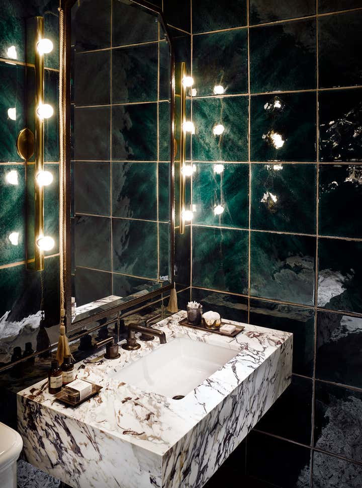 "Each suite has its own unique layout and interior details, however dark earth tones combined with luxury textures and fabrics are consistent throughout the property. The room designs are reflective of Mann’s background and harken to the building’s past" - Rebecca Paul, 6sqft