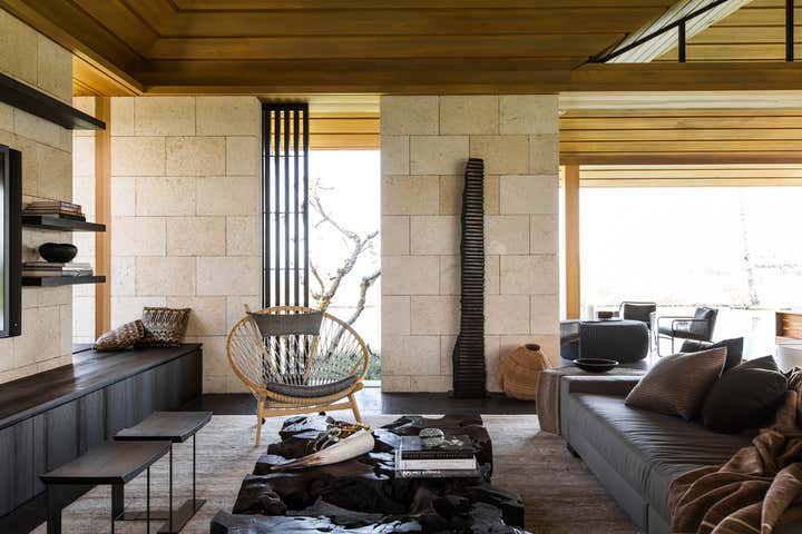 Set on a lava field poised at the edge of the Pacific Ocean, this unique, custom-built residence reimagines a Hawaiian sanctuary with an unexpected, integrated and completely modern design. A traditional Hawaiian, open-plan hale scheme, consisting of seven separate pavilions, is transformed into a contemporary mixture of rich texture, tone and surface. The materials palette underscores the deep connection to the site with lava basalt floor tiles and coral wall blocks. Collaborations include lighting by the artist Michele Oka Doner, who employs the shape of branches from the property’s indigenous Kiawe tree to explore the volcanic isles’ verdant nature. This distinctive home encapsulates an ode to the rugged Kona Coast and the beloved beach culture of its owners.