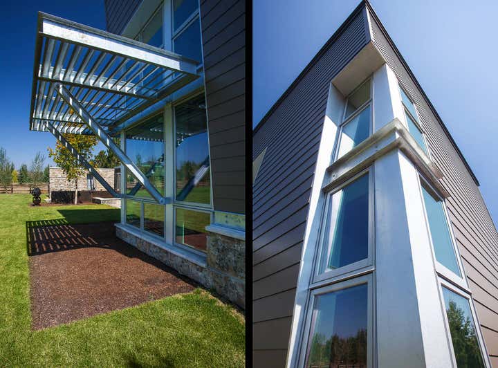 Solar panels provide all domestic hot water, heat the summer swimming pool and warm the radiant floors during winter. Rigid insulation provides a thermal brake while all of the windows – including the 23-foot Nano door – are triple glazed.