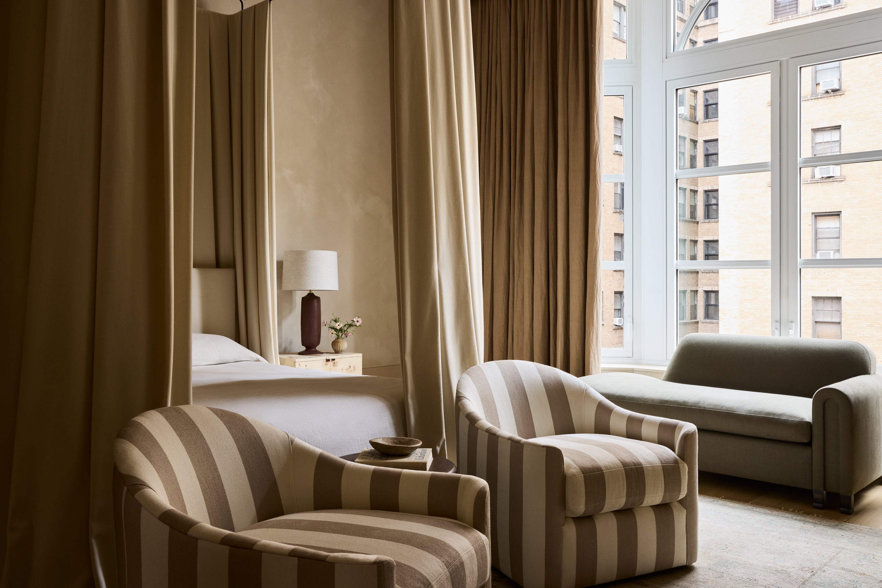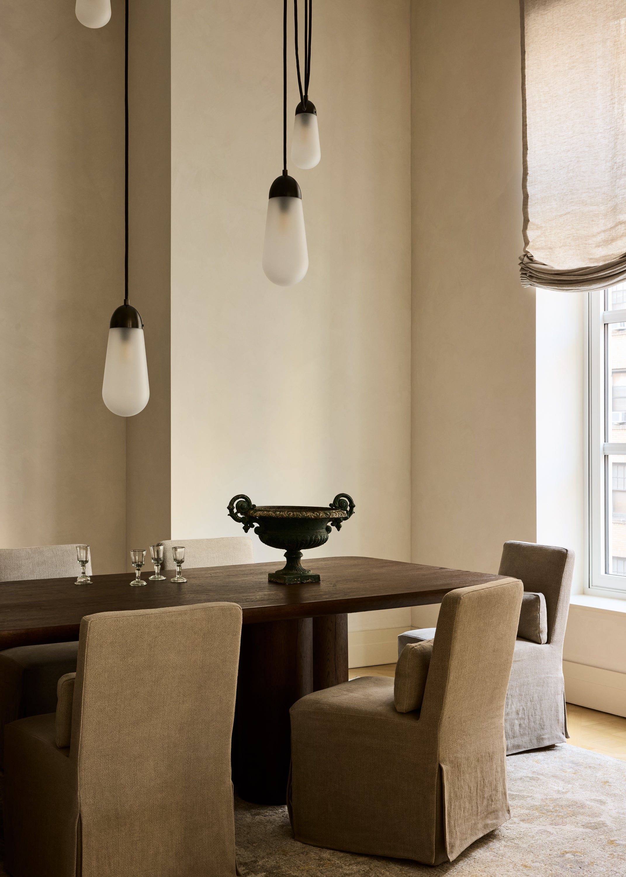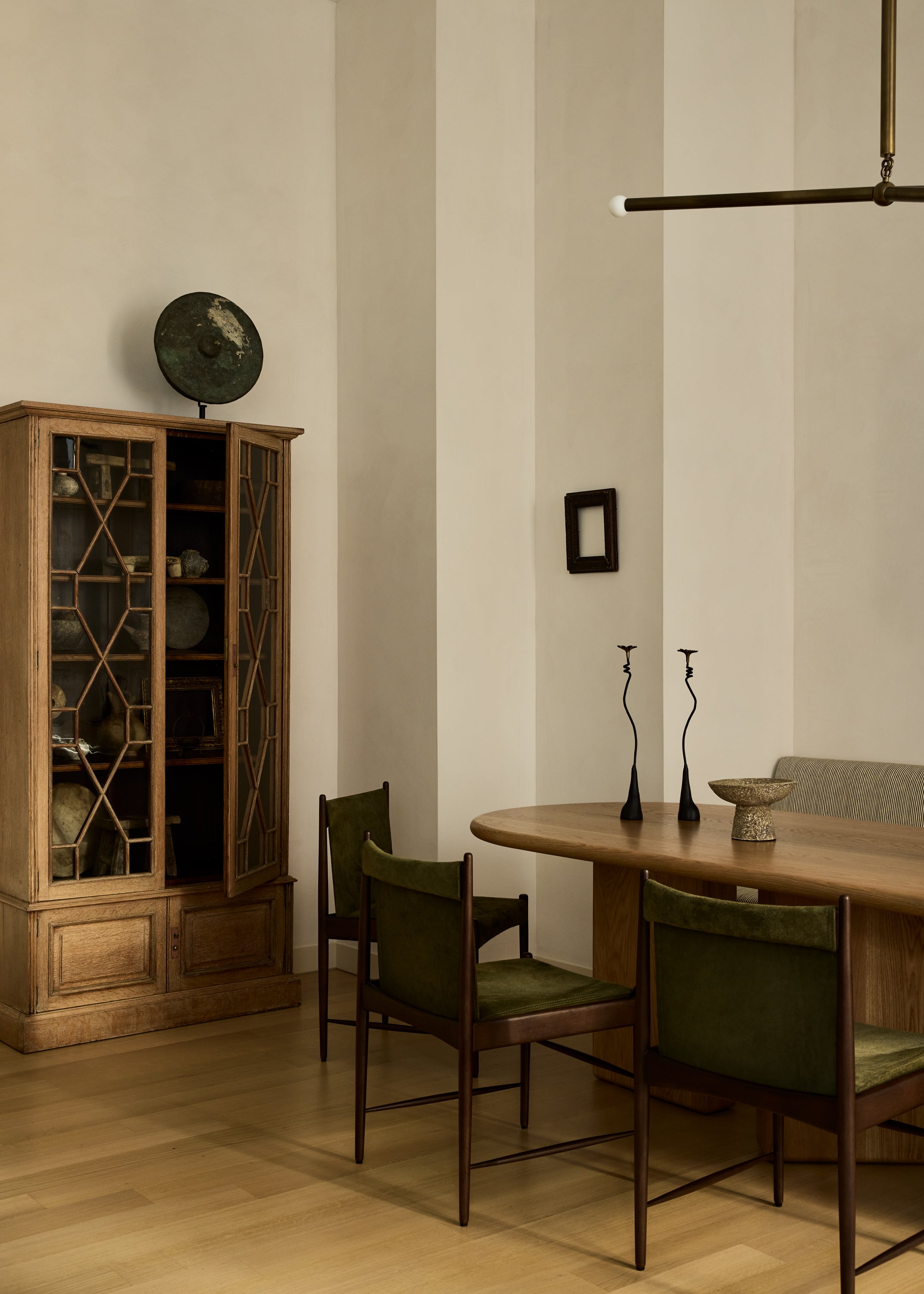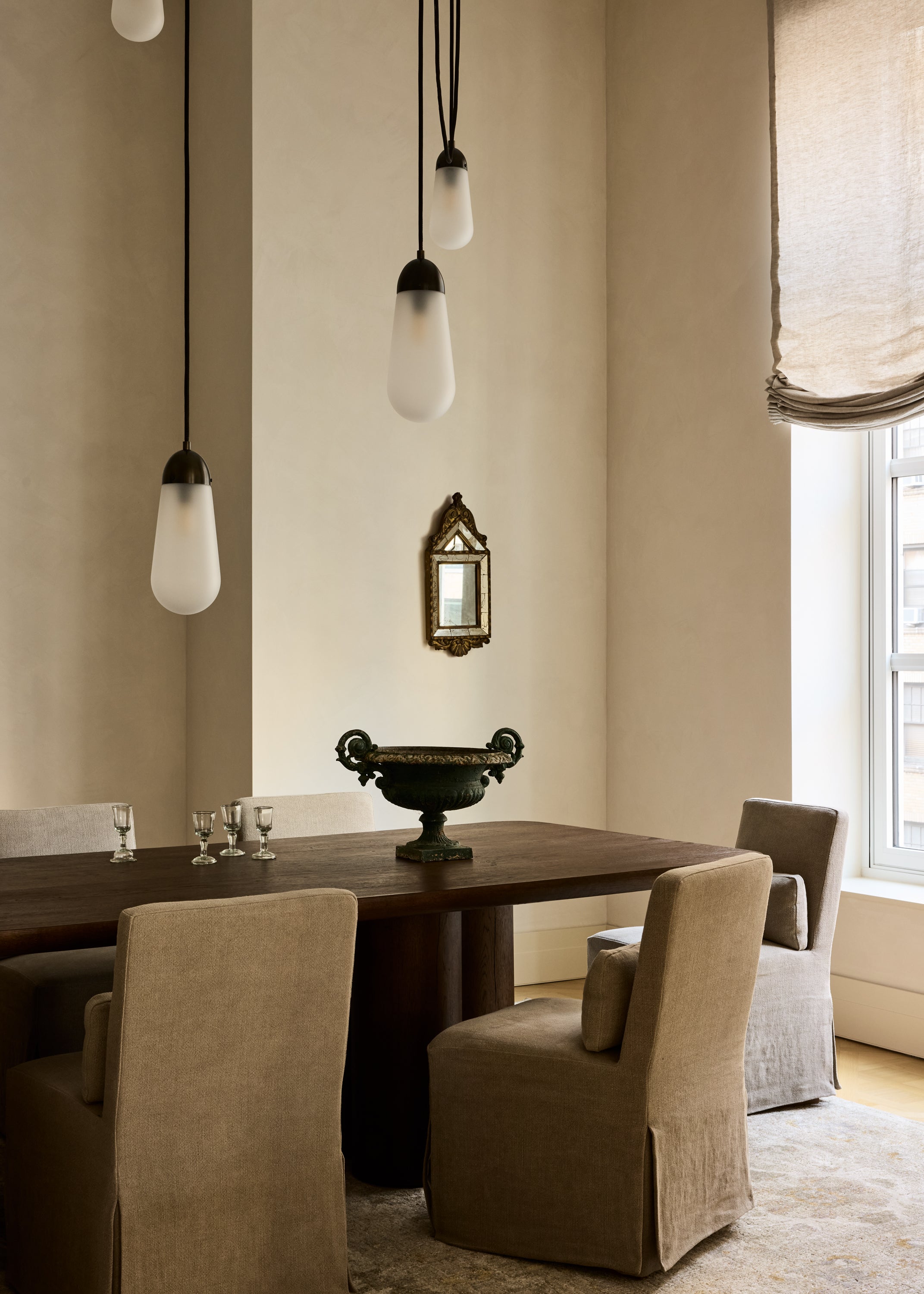 The apartment, located just one block from Central Park, offers an exceptional setting in a recently completed development designed by renowned architect Robert A.M. Stern. The property features light-filled spaces with wraparound windows in the Great Room and expansive ceiling heights, up to 13 feet. Our goal was to create a space that felt liveable and inviting while seamlessly integrating with the architecture. The base build of the home presents a clean, neutral palette, providing an ideal canvas for creating a warm and inviting family environment, resulting in a timeless family sanctuary that is both functional and reflective of the Clients needs and lifestyle.