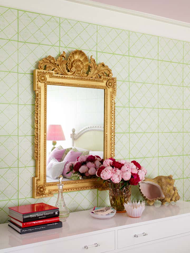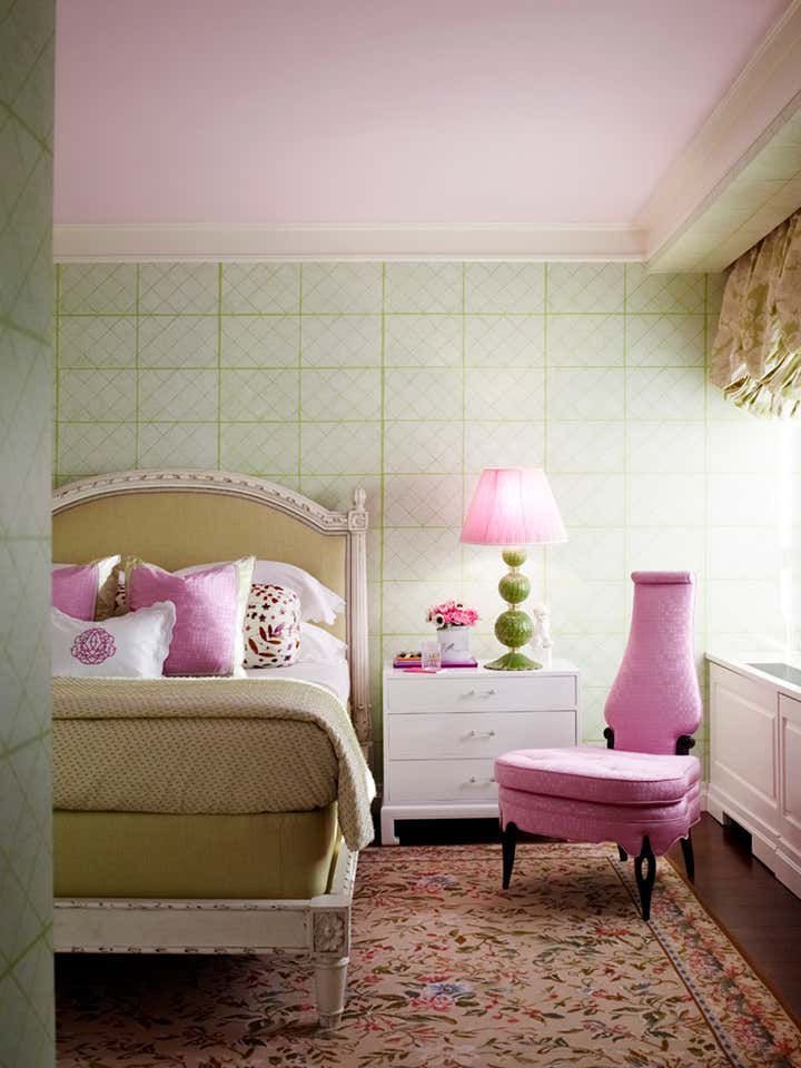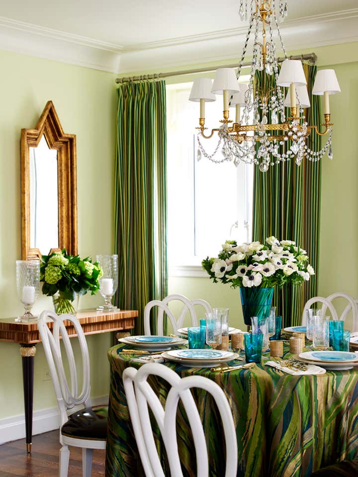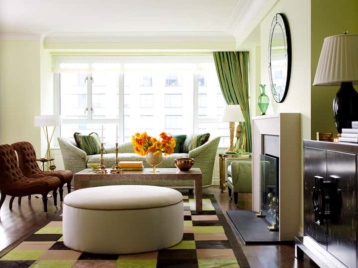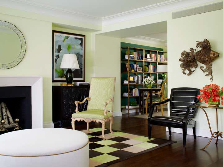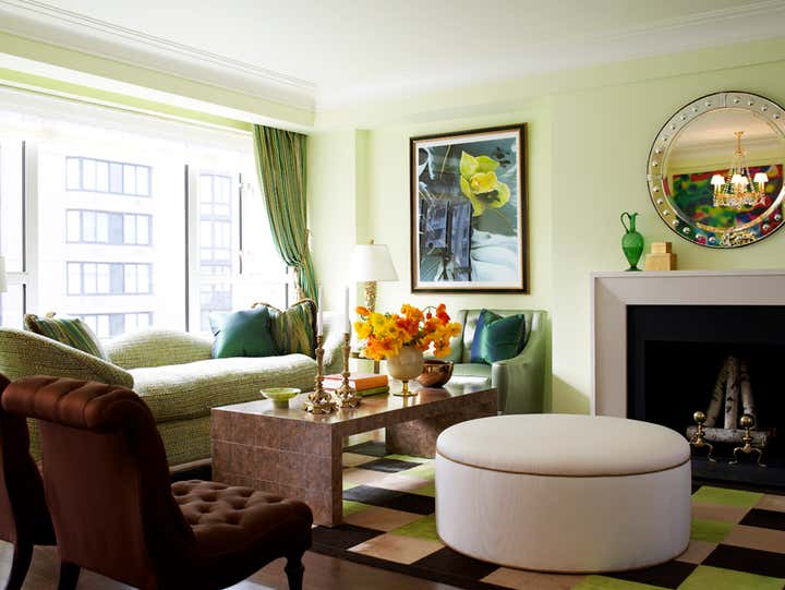 The design of this 2-bedroom New York apartment was inspired by the beauty of Grace Kelly, who actually once lived in the building. The green schemes reflect her Irish heritage and the master bedroom has an extra feminine touch.