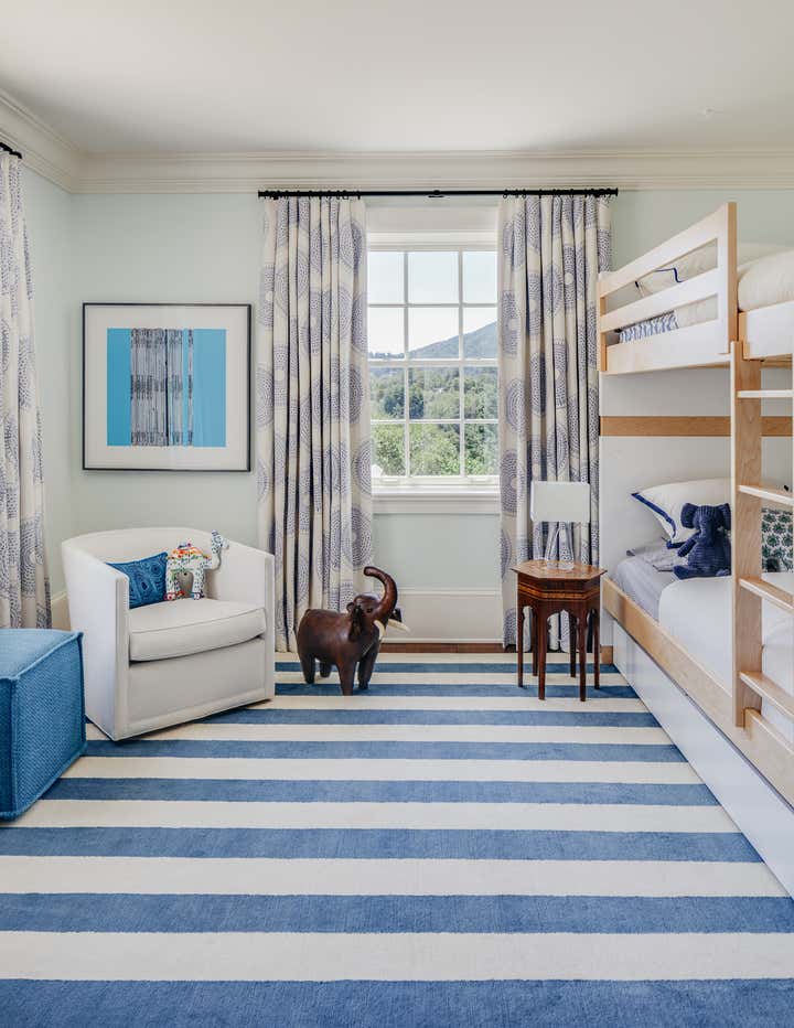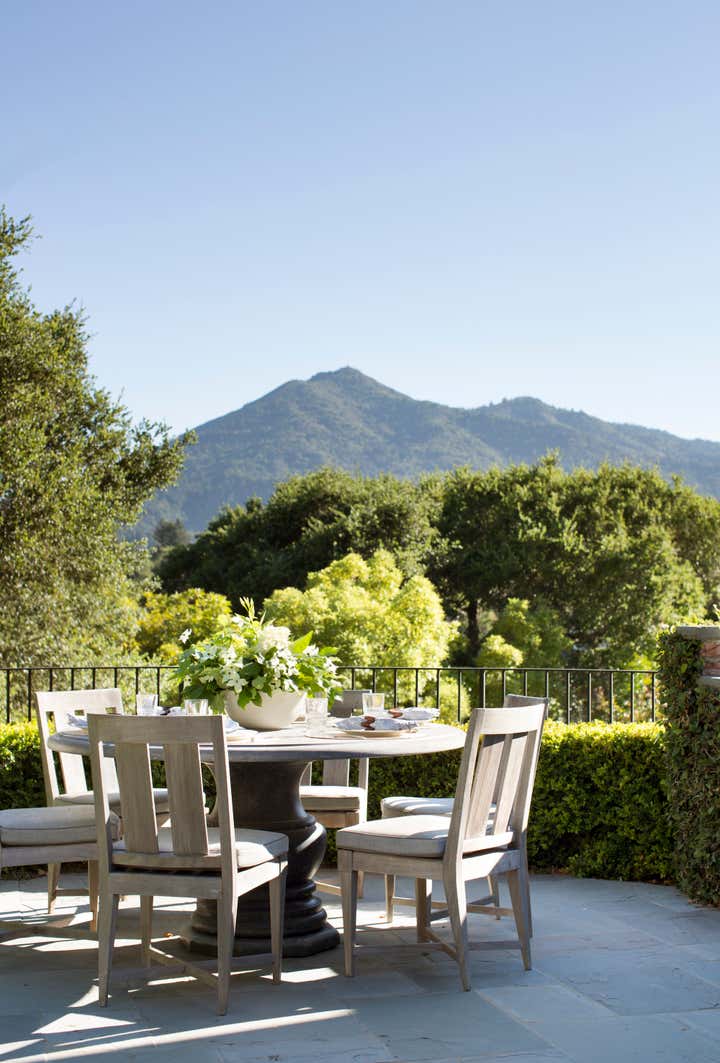 After deciding to relocate to the Bay Area to raise their young children, an East Coast couple initially landed in San Francisco. But then, seeking warmer summers, they explored Marin County and found their dream spot in a spacious home with lush surroundings and mountain views. It was the perfect place to live out the story they imagined for their family. White they loved the house, its 17-year-old interior was too dark and for their lifestyle approach. Our goal for this project was to help refresh the spaces. We wanted to update if for this family that doesn t take itself too seriously. The property s lush environs were a main attraction, and landscape designer Janell Denler Hobart was brought in to refresh the grounds.