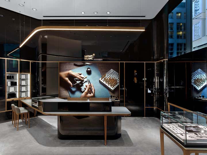 Montblanc brings the Maison’s essence to life through a new concept boutique. Through the eyes of designer Noé Duchaufour-Lawrance, the immersive retail environment introduces a pure and uncluttered aesthetic, mixing black, white and wood, and revealing the collections in a display that enhances the fine qualities of each piece. The new concept features three main design themes linked to the roots of the Maison: cursive handwriting associated with the Montblanc fountain pen, the emblem and ink shades, the passion for craftsmanship.