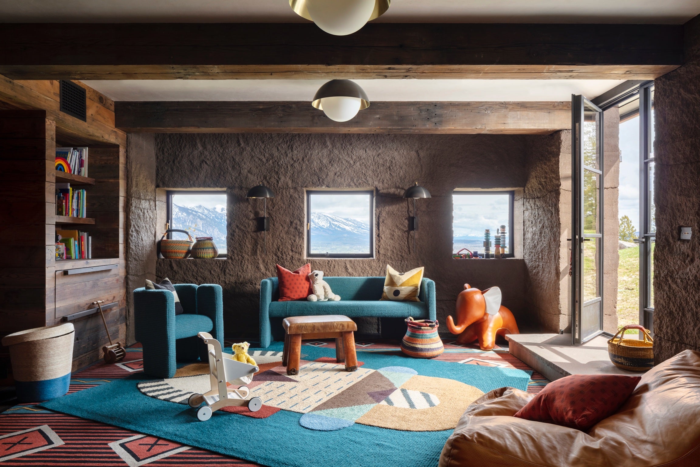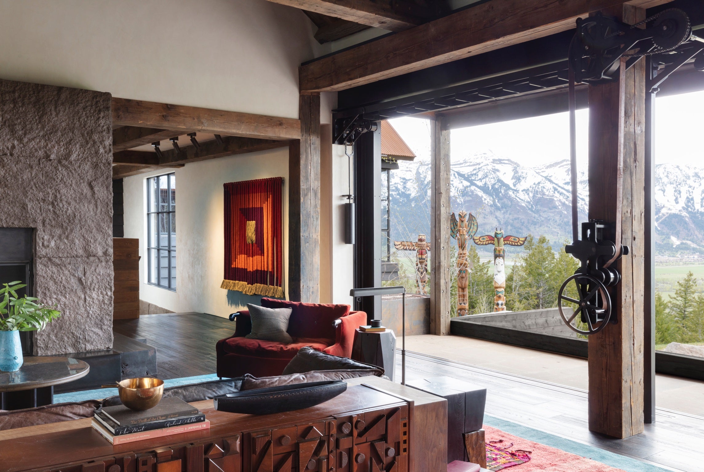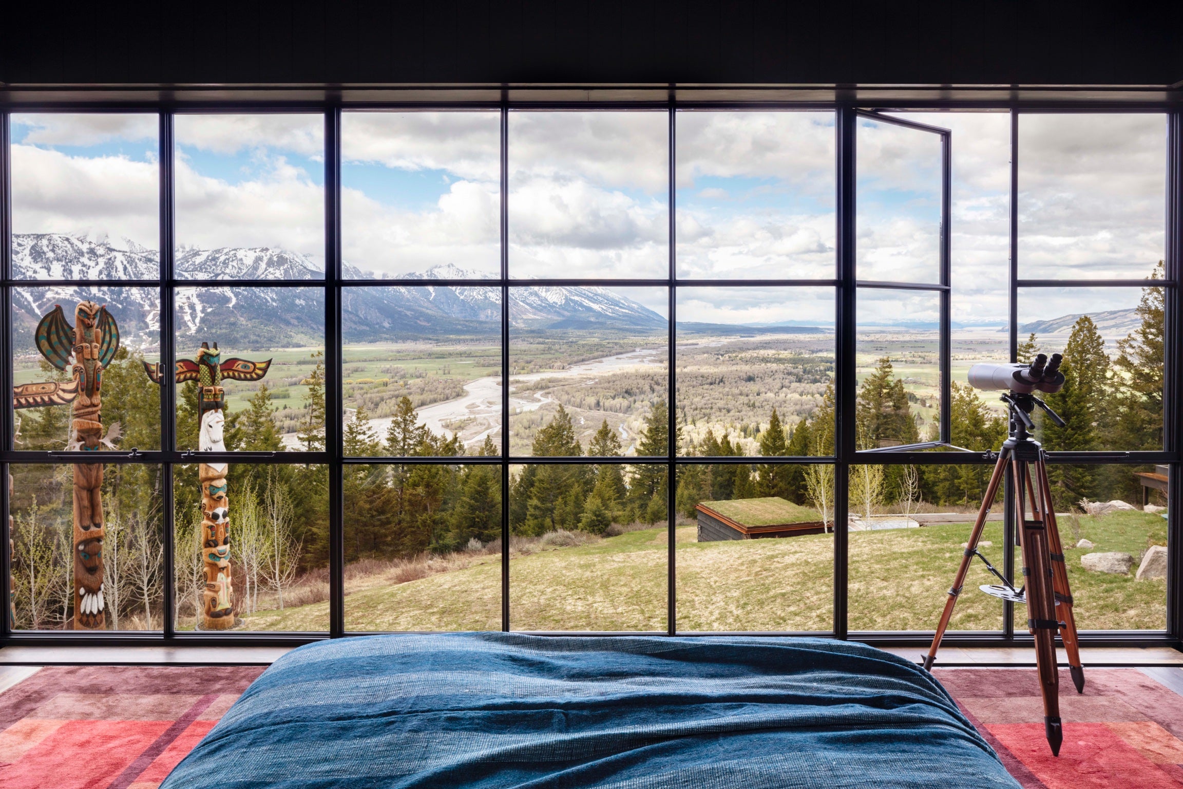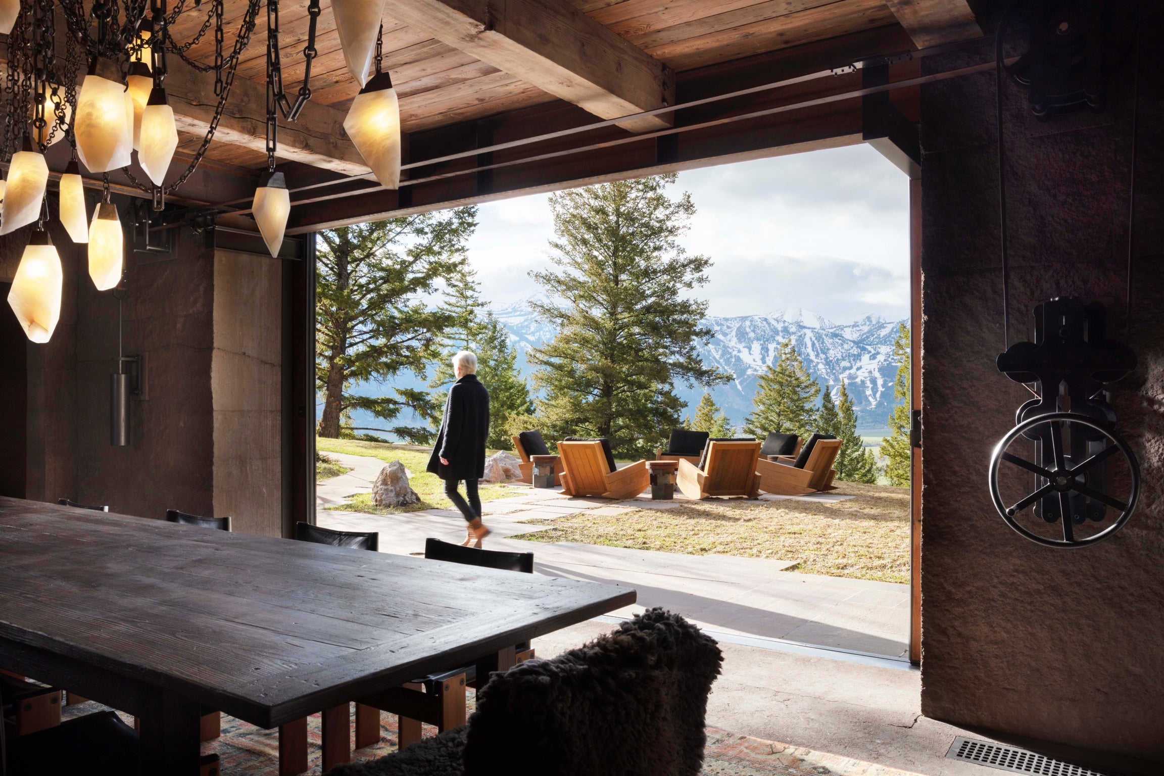 Overlooking the Snake River Valley rests a 55 acre residential compound on a steeply facing site facing Wyoming’s Grand Teton mountain range. The buildings are sited at varying elevations and nestled into the hillside to form a group of connected exterior spaces that take advantage of the steep terrain and celebrate the extraordinary views.