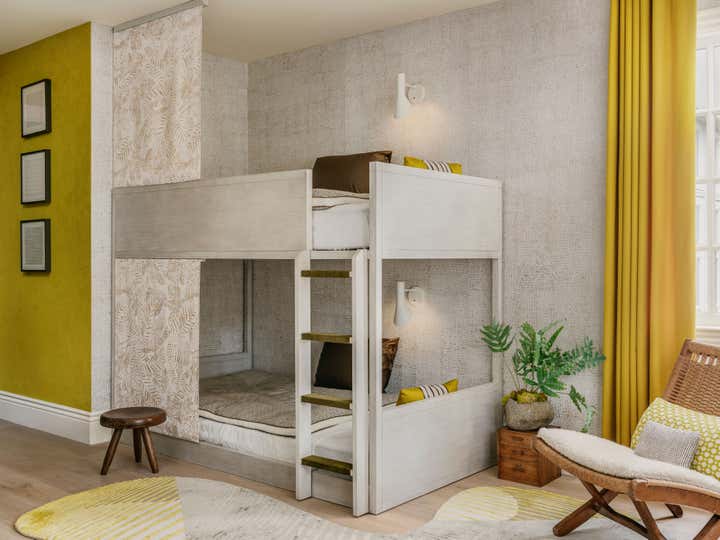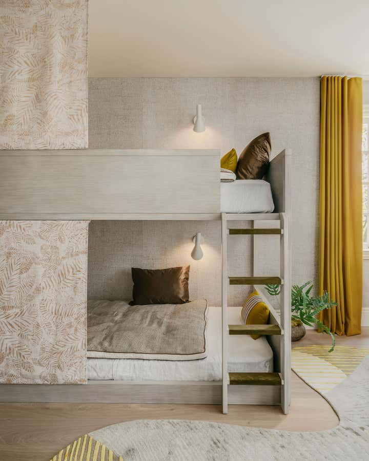 This non-binary children s bedroom was rooted in breaking down two tropes commonly associated with kids rooms: the societal expectation of gendered spaces, and the children s room as an exhibition of mass consumption. Leaning toward Japanese minimalist design, the color palette was developed from the natural framework of the view just outside of the bedroom.