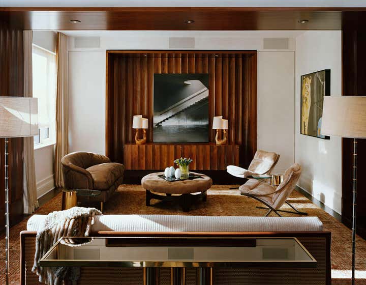 For a NYC full floor apartment owned by a second time client, FN took a very “vanilla” undistinguished space and enhanced it by adding layers of architectural and finish detail. Plaster wall finishes, fluted walnut paneling, and new bathrooms were complemented by custom designed and found vintage pieces, eliminating whatever generic, spec-apartment quality was originally there.