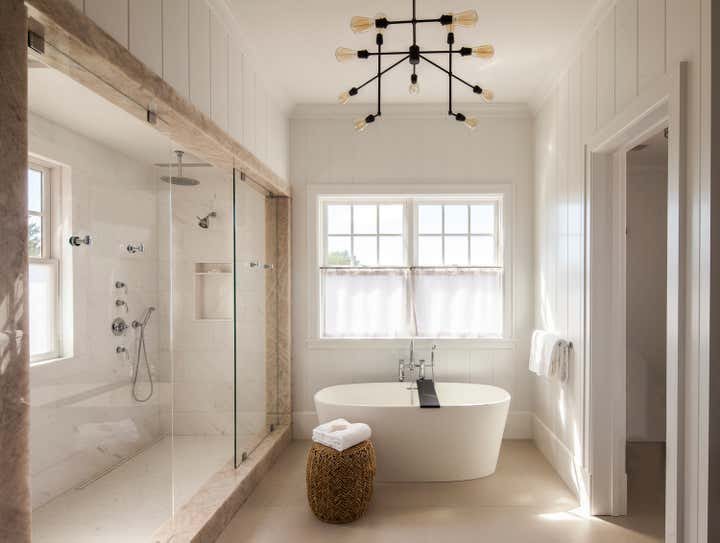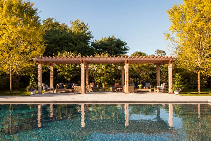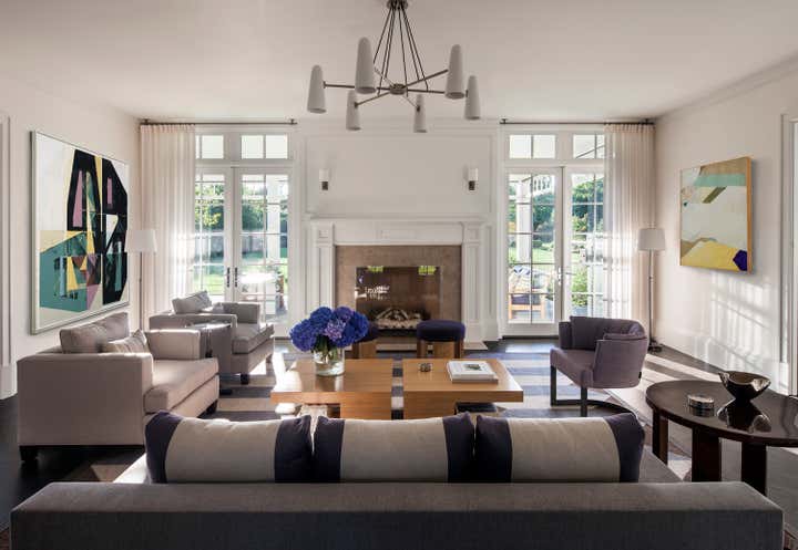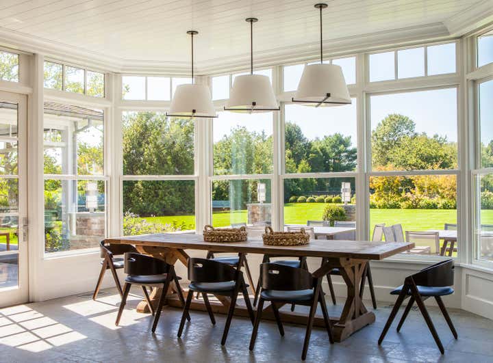 This 7872 ft.² new construction summer home for a family from NYC is simultaneously peaceful and majestic. The home features traditional Long Island farmhouse style elements, with an airy openness that creates comfortable, modern living spaces. General Contractor: Michael Davis Design Construction