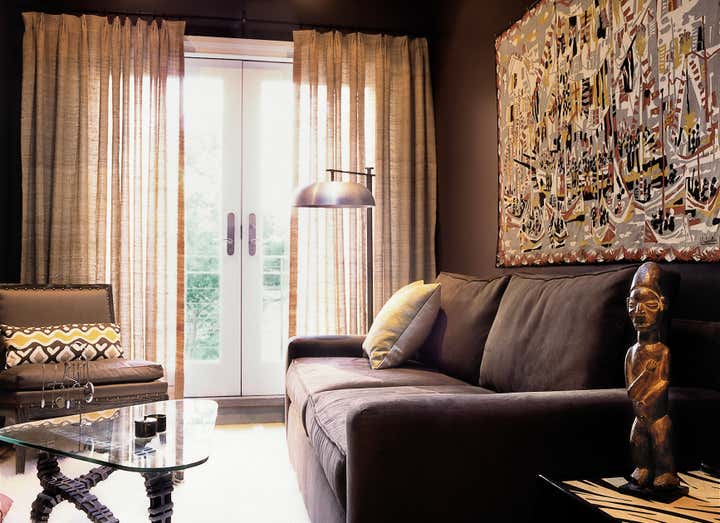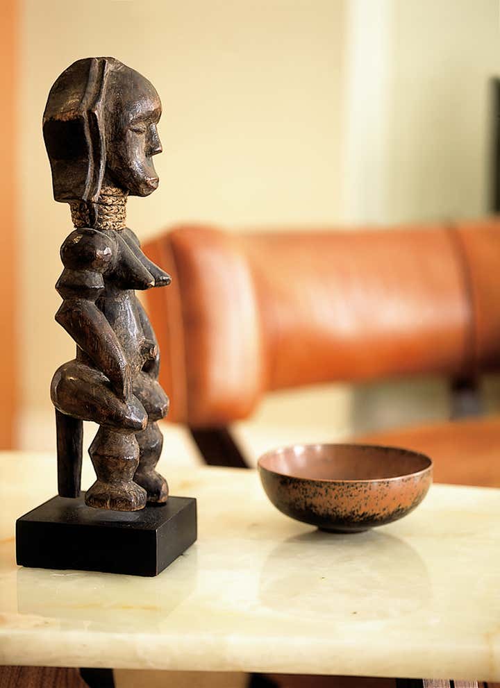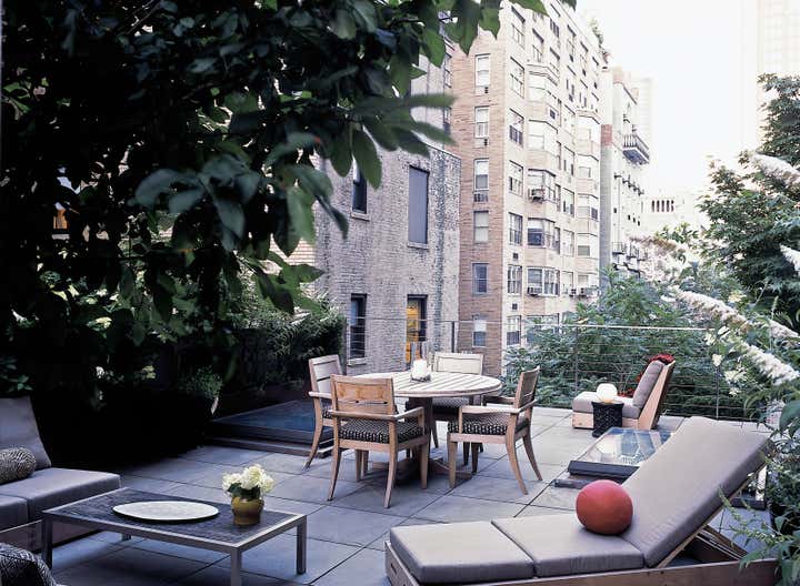 This duplex penthouse apartment is located near the historical Park Avenue Amory on 66 th Street. The townhouse was built in 1920 and has 4 stories and 3 units. An expansive rooftop terrace completes the duplex allowing for entertaining and family BBQ’s. The apartment serves as a pied a terre for an entrepreneur who in his hectic travel schedule dreamt about finding a real “home”. 2Michaels created a relaxed and warm environment incorporating 1940’s French furniture, an Edward Womely console, an onyx Harvey Probber side table and a rare arching floor lamp from the 1950’s. The color scheme was based on nature; Stone, earthenware, greenery, organic textures and hand woven carpets. Art works by Sam Samore, Angela Testa, Betsy Eby and Andrea Shapiro.