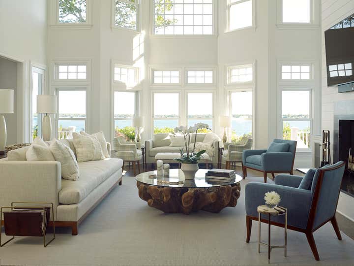 This recently renovated home on Peconic Bay used architecturally clean lines and a neutral palette with added accents of blue and and warm woods to create a modern transitional Beach House for a multi generational family. We mixed in vintage pieces with transitional new furniture to design a comfortable and relaxed, yet sophisticated interior.