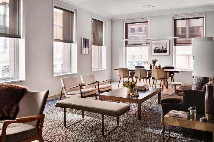 Renovation of a 2100 sq. ft apartment in Tribeca, New York, including new flooring, a kitchen, custom millwork, lighting, AV system and complete FF&E. This apartment comprises living, dining and entertainment spaces, a kitchen, three bedrooms and three bathrooms.