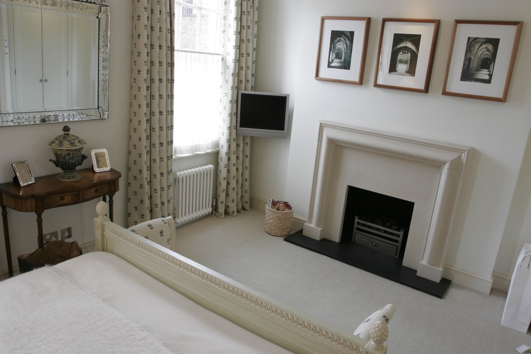 We aimed to work with the traditional architecture of the building but adding a contemporary twist. We specified good natural materials of stone, and oak for the floors of the common areas and reception rooms, to establish clean lines and airiness. Massive classical plaster columns were installed to divide the main sitting room, and these lend a sense of scale, added areas of light and shade and help the small rooms to become more impressive and stylish.