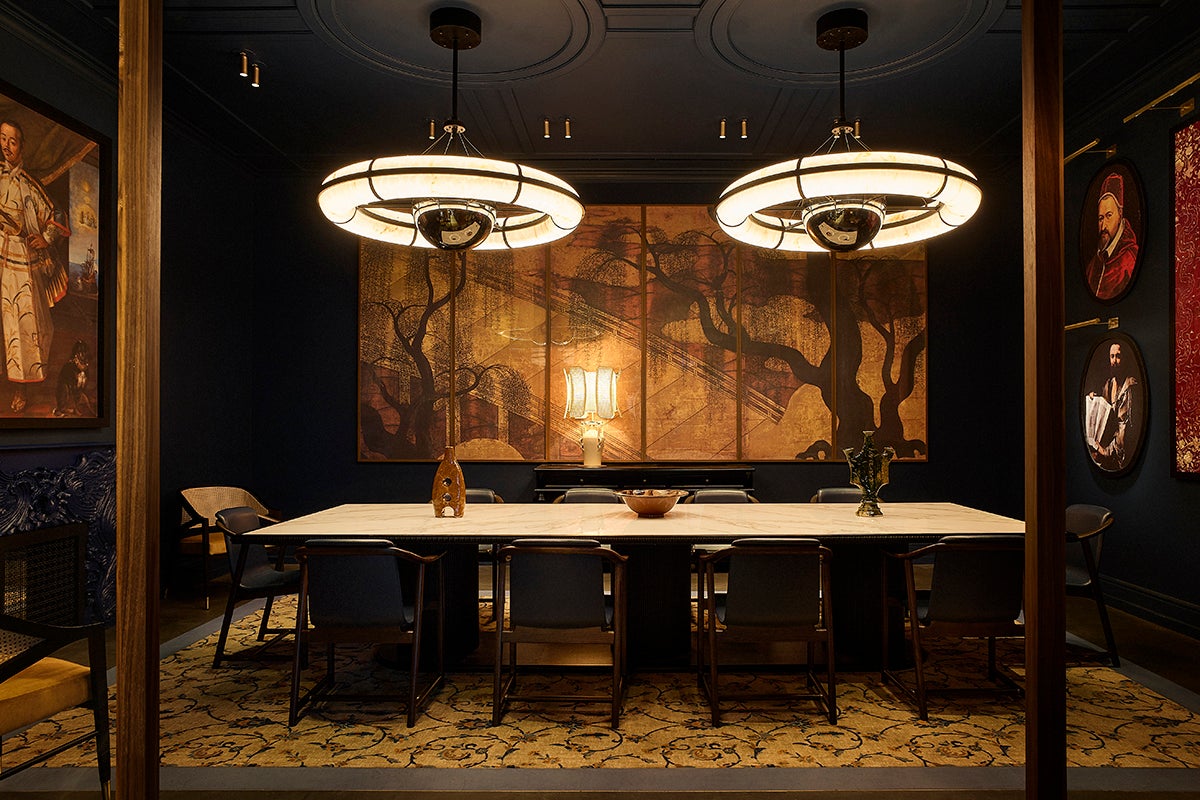 The Bazaar by José Andrés - NoMad, a Restaurant located at the Ritz-Carlton in New York, is a theatrical and sophisticated space designed by Lázaro Rosa-Violán Studio. The interior interprets the encounter between Spain and Japan through a warm palette, natural woods, textured glass and details that evoke travel and craftsmanship. The journey flows from an enveloping bar-lounge to a main dining room that combines elegance, layers of light and noble materials, creating a sensory experience where cuisine and design dialogue in balance.