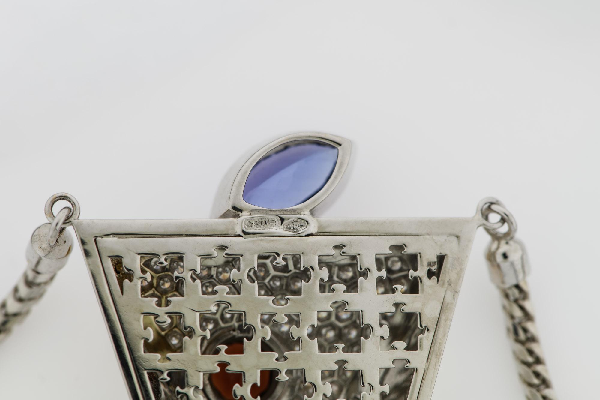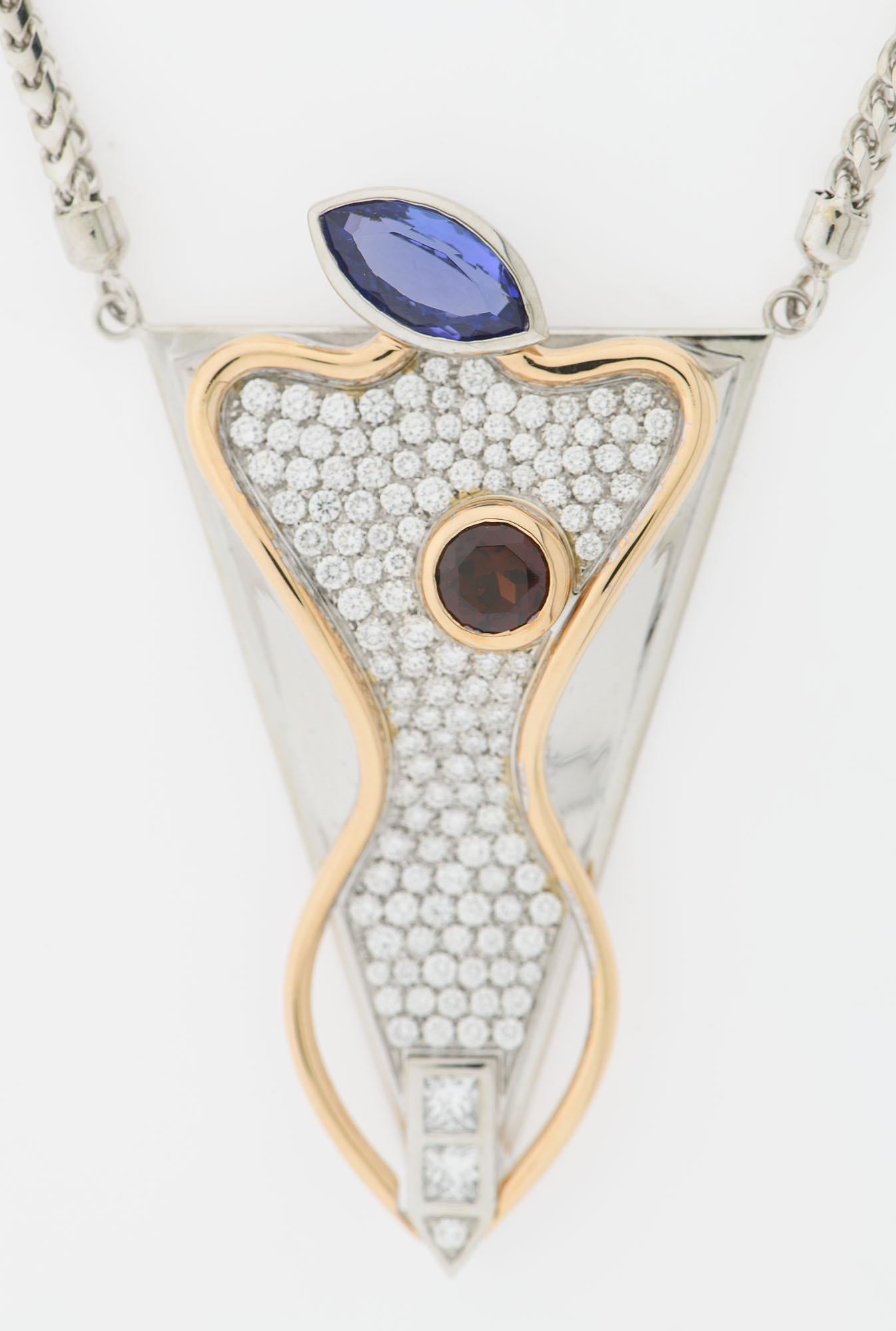 18 Karat Gold mit Tansanit Kunzit und weißem Diamant Außergewöhnliche moderne Halskette