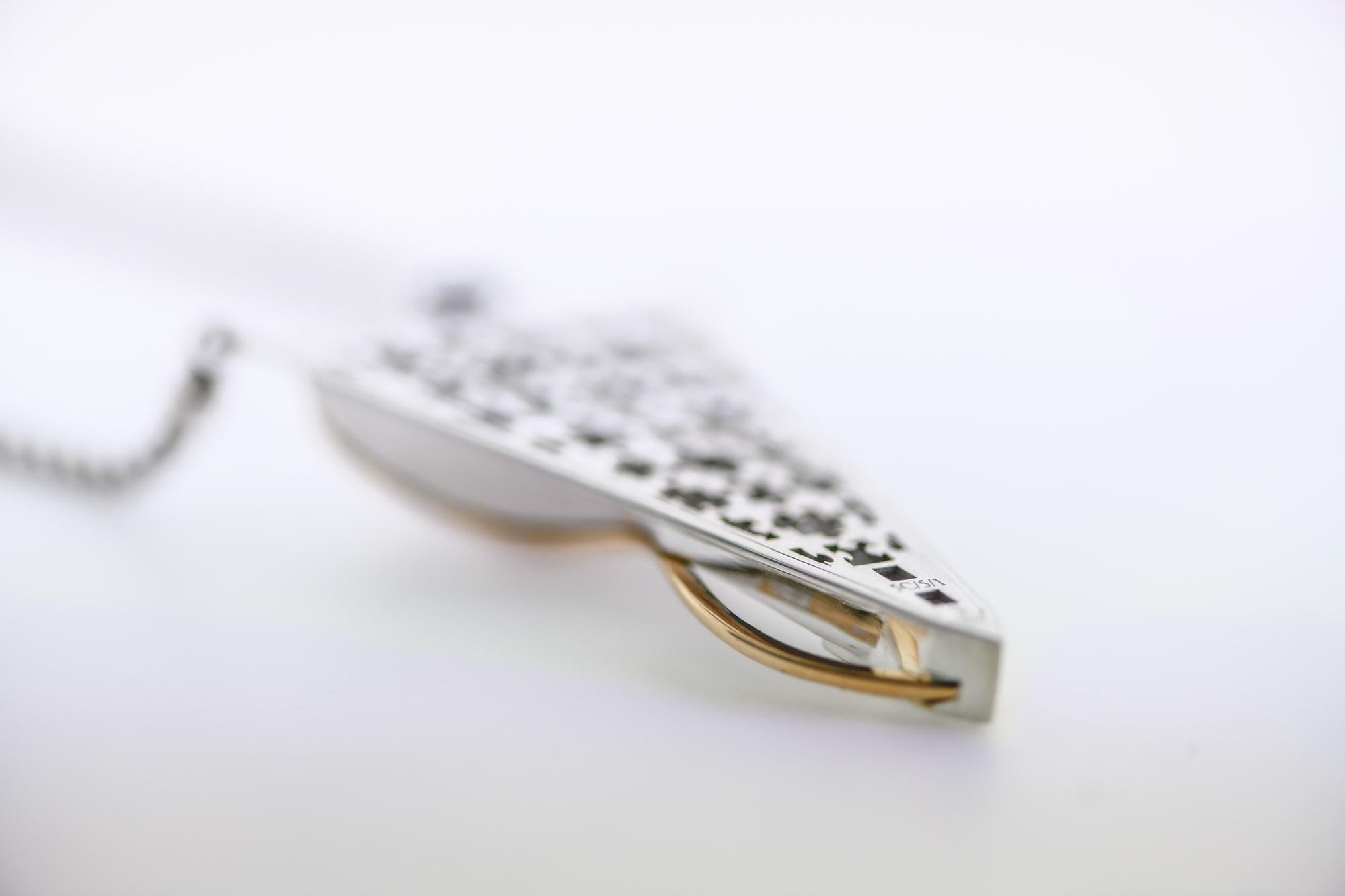 The SigridB logo, brand stamp and edition number are engraved on the back of the pendant.