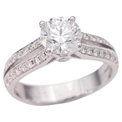 Dieser Verlobungsring aus 18-karätigem Weißgold ist eine eindrucksvolle Verkörperung klassischer Anziehungskraft, die sich harmonisch mit moderner Raffinesse verbindet.