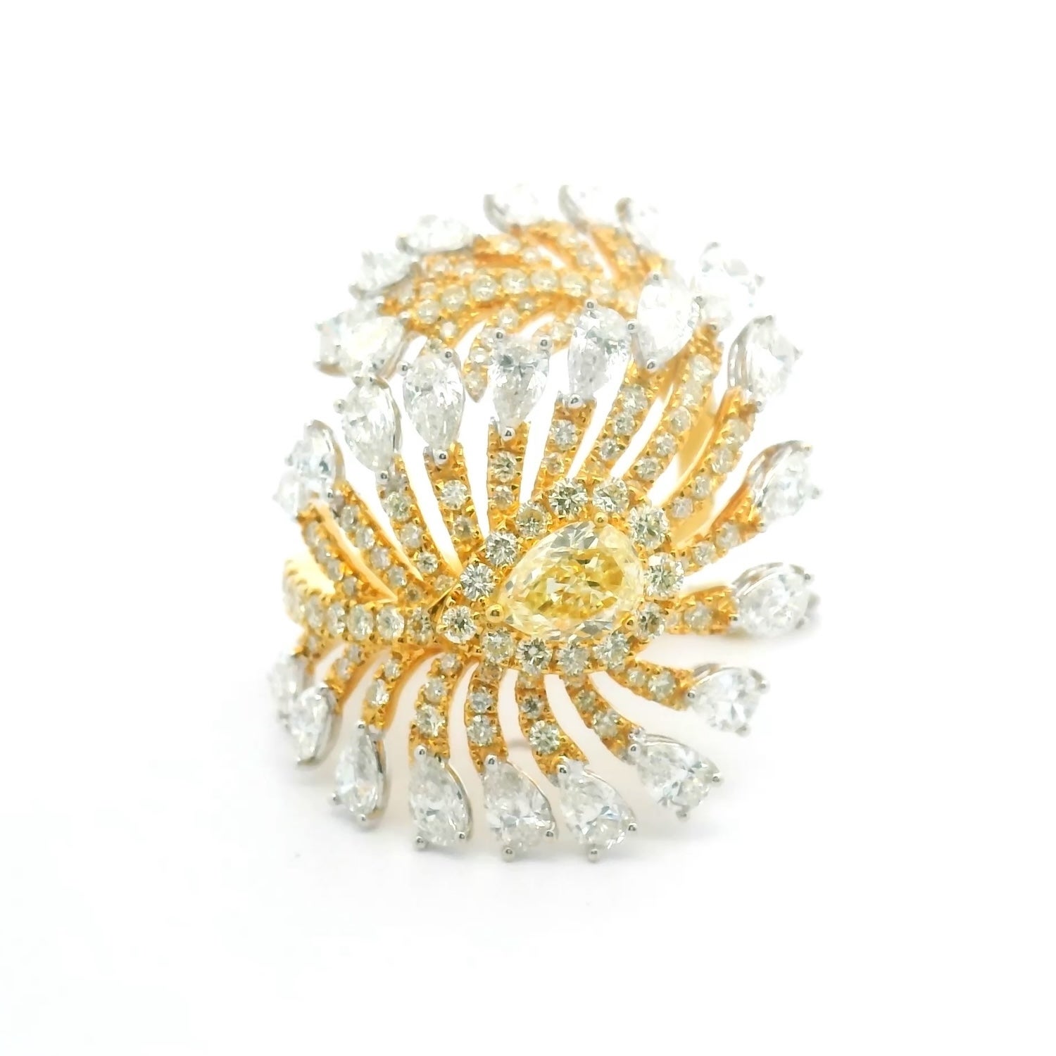 Fancy Bespoke 5.70 carat Yellow and White Diamond Diamond Feather Ring
