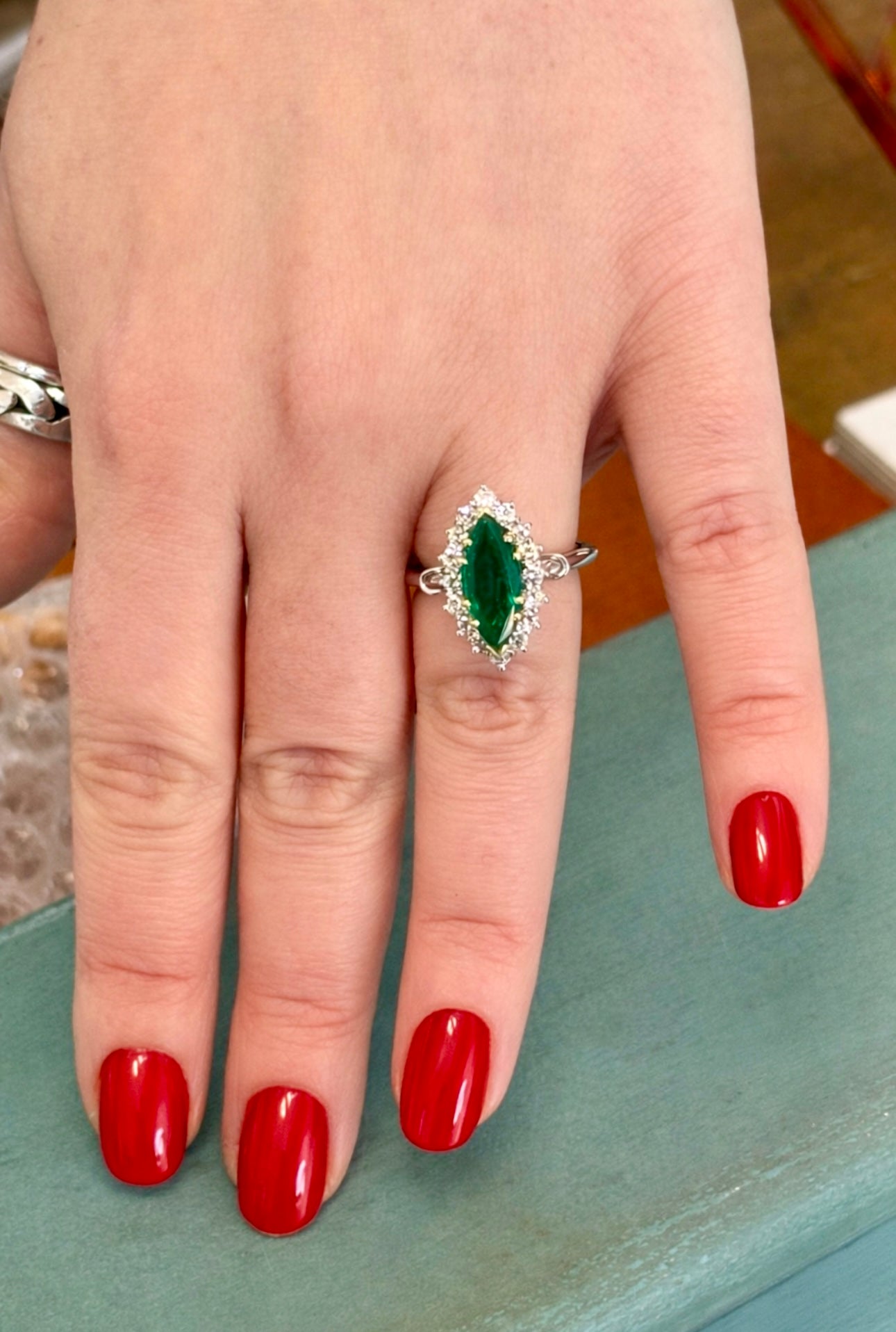 Diamond, Emerald, 18k Gold, White Gold