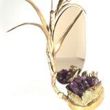 Vintage TURA Pivotal Oversized Table Mirror Burgundy Enamel Gold-Plated, 1950