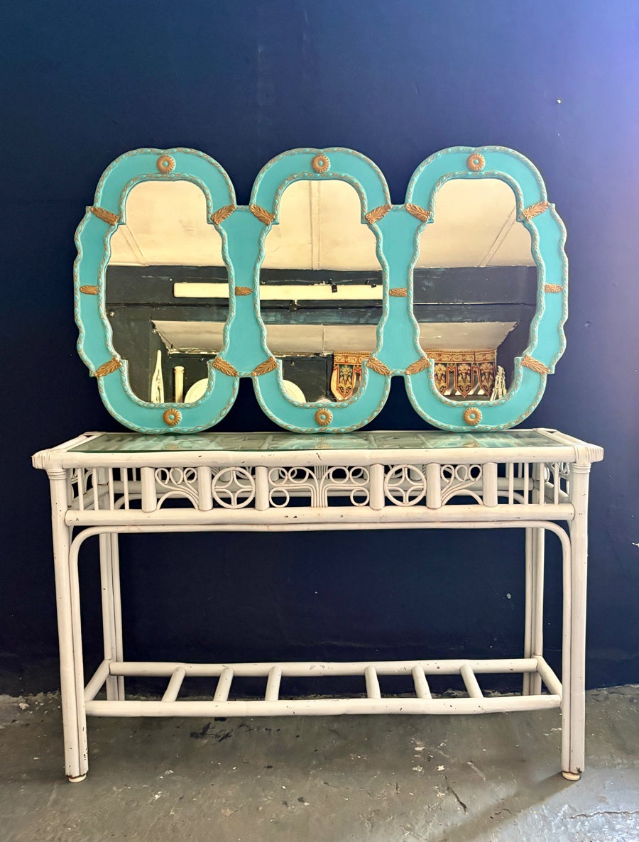 This vintage wicker, cane and rattan étagère shelf is a striking blend of sculptural design and organic texture—perfect for adding warmth and character to any space. Handwoven with i...