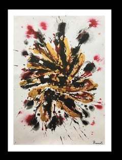 Maravillosa obra minimalista de técnica mixta en negro y rojo Circa 1970. Aunque el artista es desconocido, esta obra fue adquirida junto con piezas de los conocidos artistas Karel ...