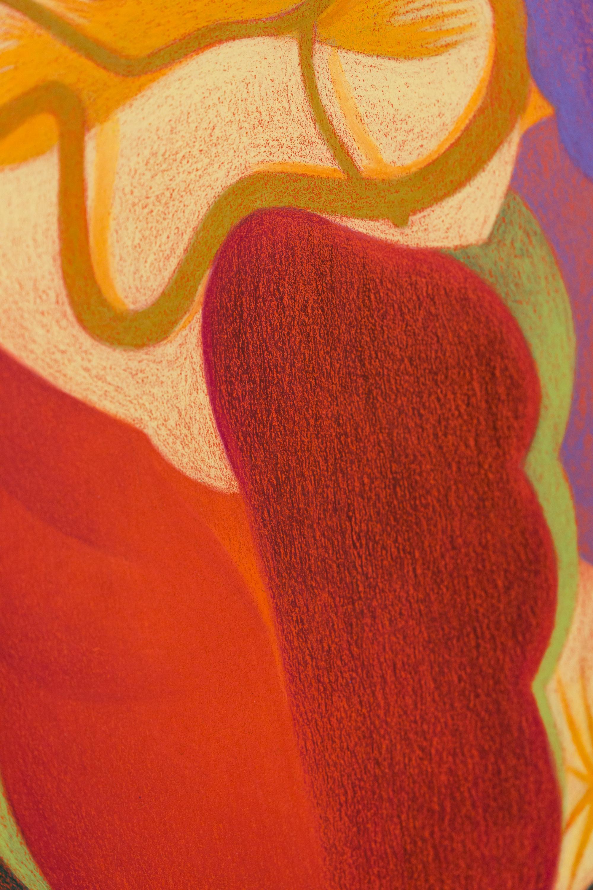 "Zarcillos, naranja dormida" es una obra original de Roche Cruchon realizada en pastel sobre papel. Esta pieza mide 15,5" de alto x 12,5" de ancho enmarcada y está firmada en el anve...