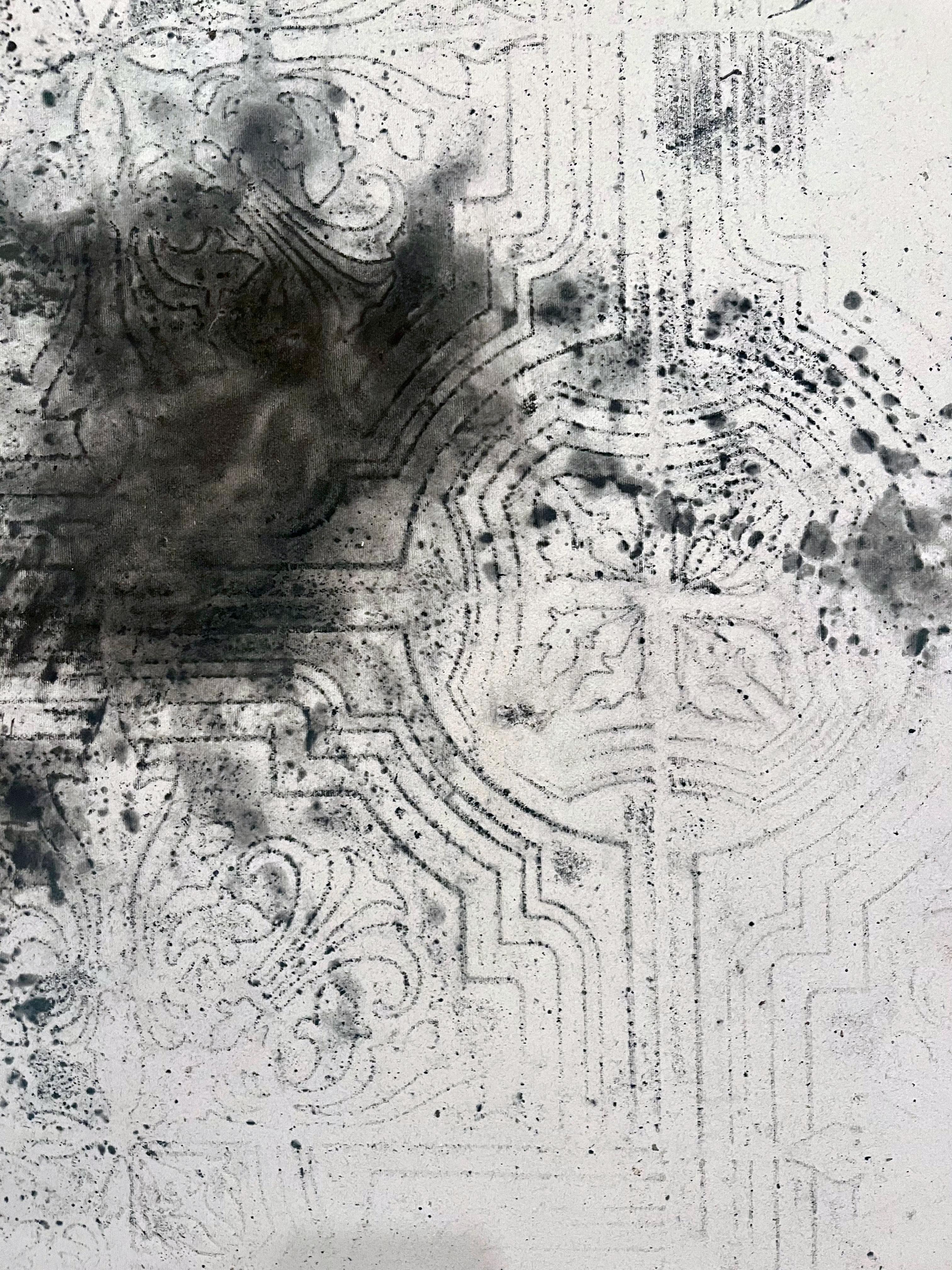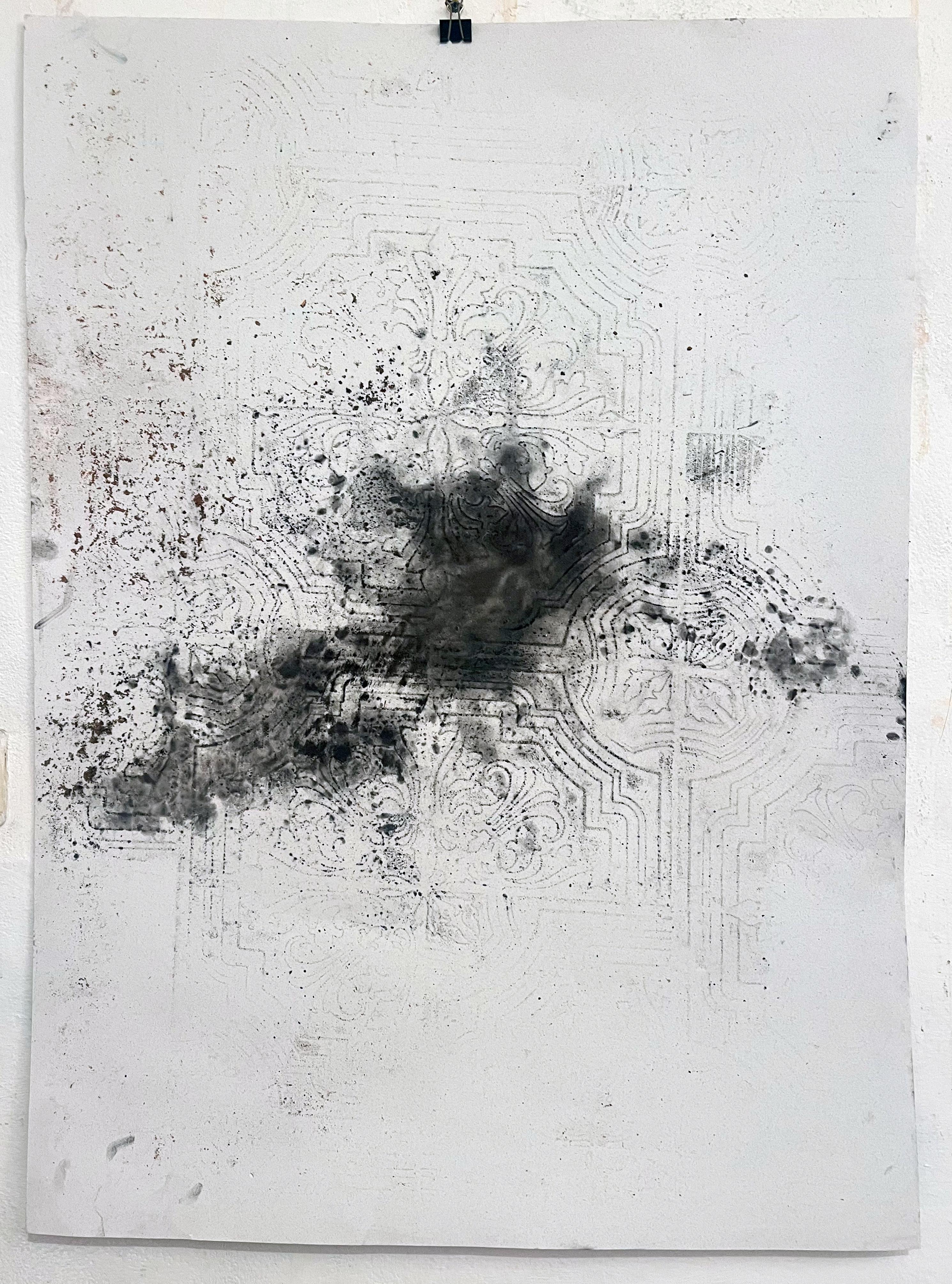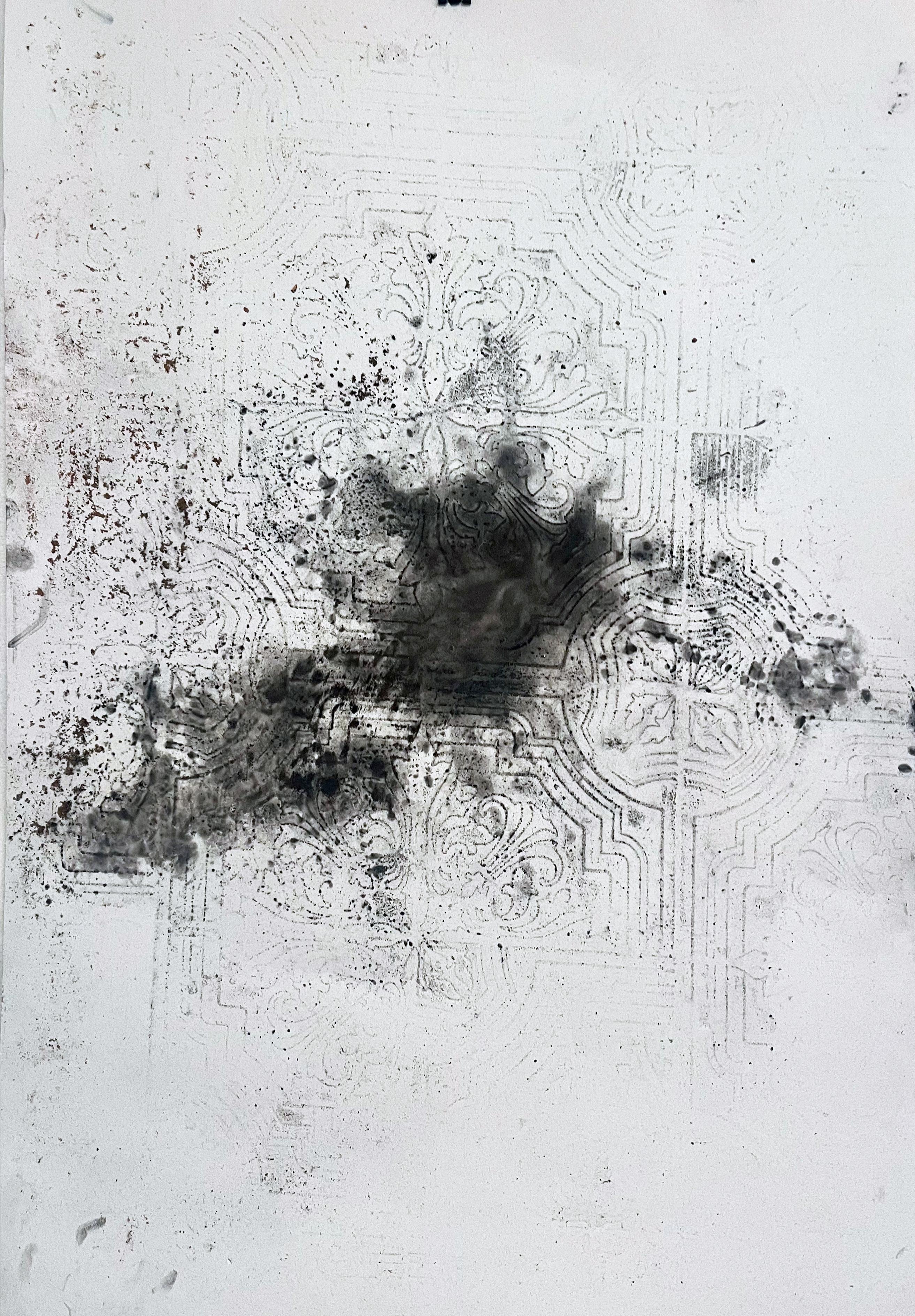 Tinta negra sobre papel, agua de mar, fractal, dibujos imposibles y poéticos