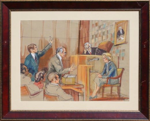 Este dibujo representa un momento de uno de los juicios más largos de la historia de EEUU, cuando Jean Harris, directora de una escuela para niñas en Virginia, fue juzgada durante 14...