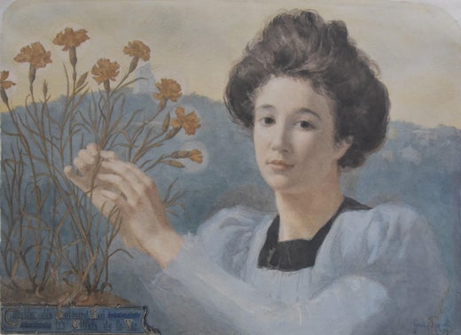 Artículos similares a Gustave Riquet (1866-1938) Les Œillets de la vie, 1898 acuarela firmada