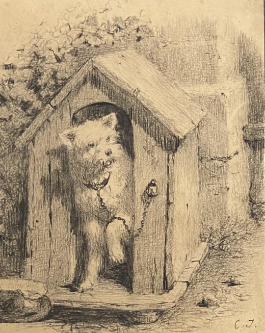Artículos similares a Charles Emile Jacque (París 1813 - 1894) Perro en una perrera, dibujo firmado