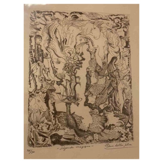 Pino della Selva (seudónimo de Pino Giuffrida ) es un pintor, escultor , diseñador y grabador ( aguafuerte y xilografía ), también poeta y crítico de arte , nacido el 3 de enero de 1904 en Catania ( Sicilia ), se instaló en París en 1931 (vivió en el 31, rue La Bruyère )murió en 1987 en París. Su obra pictórica, que inicialmente se orientó hacia temas de carácter social ( Ciegos al trabajo en 1925, Obreros en 1932) comparables a los de los franceses Édouard Pignon y André Fougeron, se situó después en la continuidad del simbolismo y el surrealismo , señalando Gino Raya , en su monografía dedicada a nuestro artista, un oficio pictórico realista en el que se pueden sentir las deformaciones provocadas por el sueño , incluso las alucinaciones .