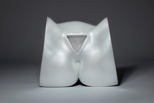 Doncella Madre y Arpía es una escultura de resina moldeada al natural con una vagina piramidal de oro blanco de 18 quilates engastada con 28 quilates de impecables diamantes blancos. La escultura está acabada con una capa de laca blanca nacarada. Elaborado en honor de la matriarca y de las tres etapas de su sagrada existencia.