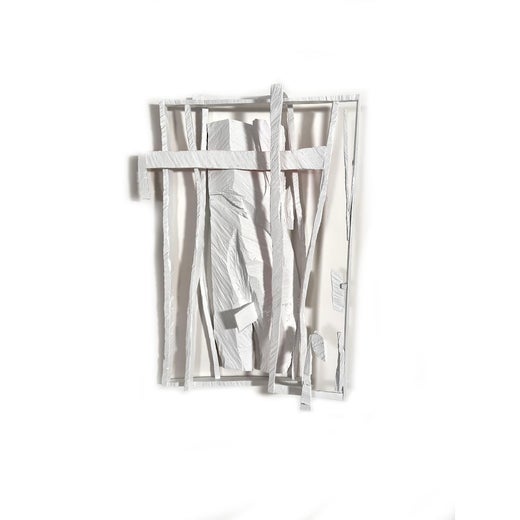 Madera fresada, escayola, lápiz de color y acrílico.