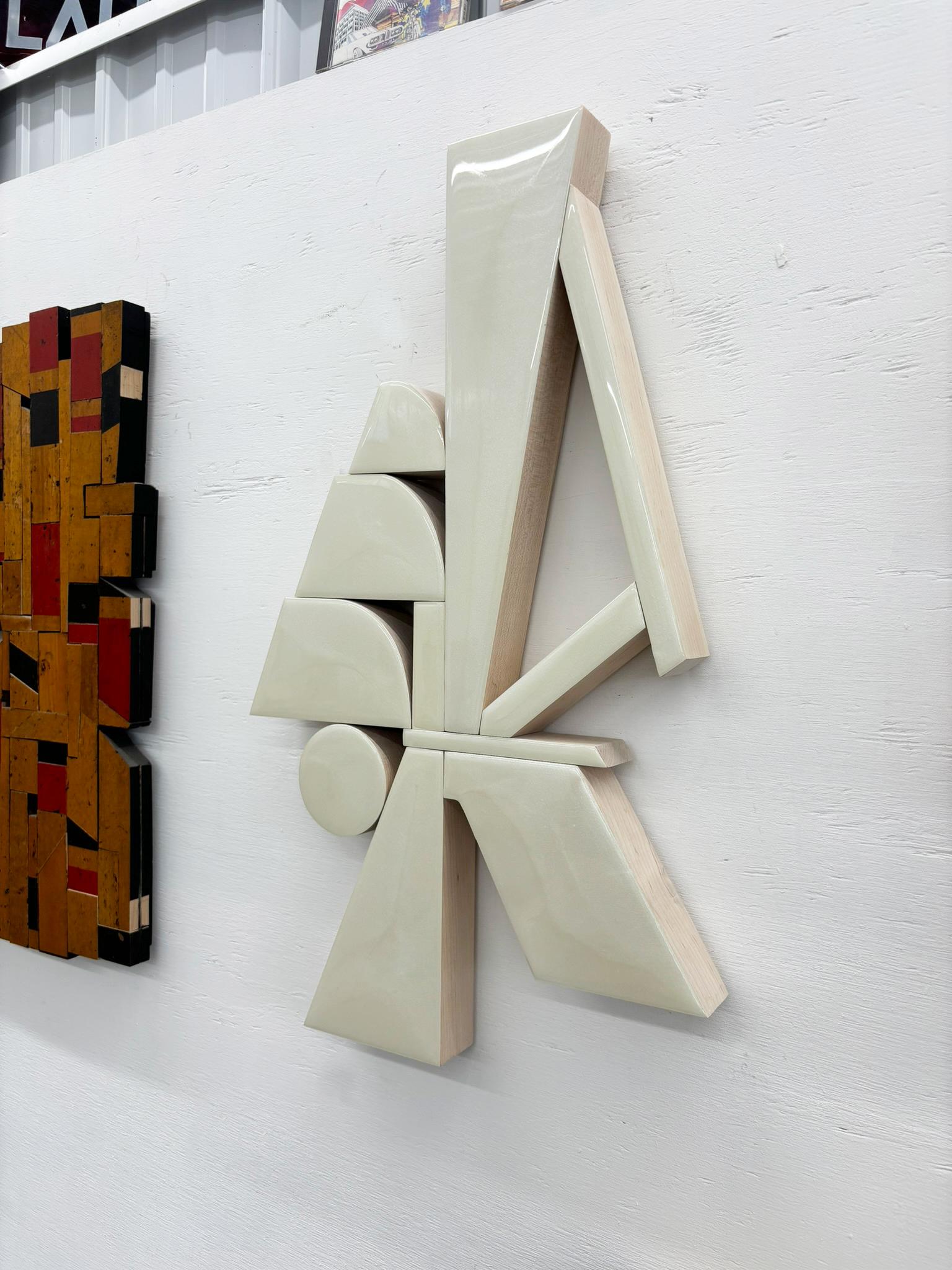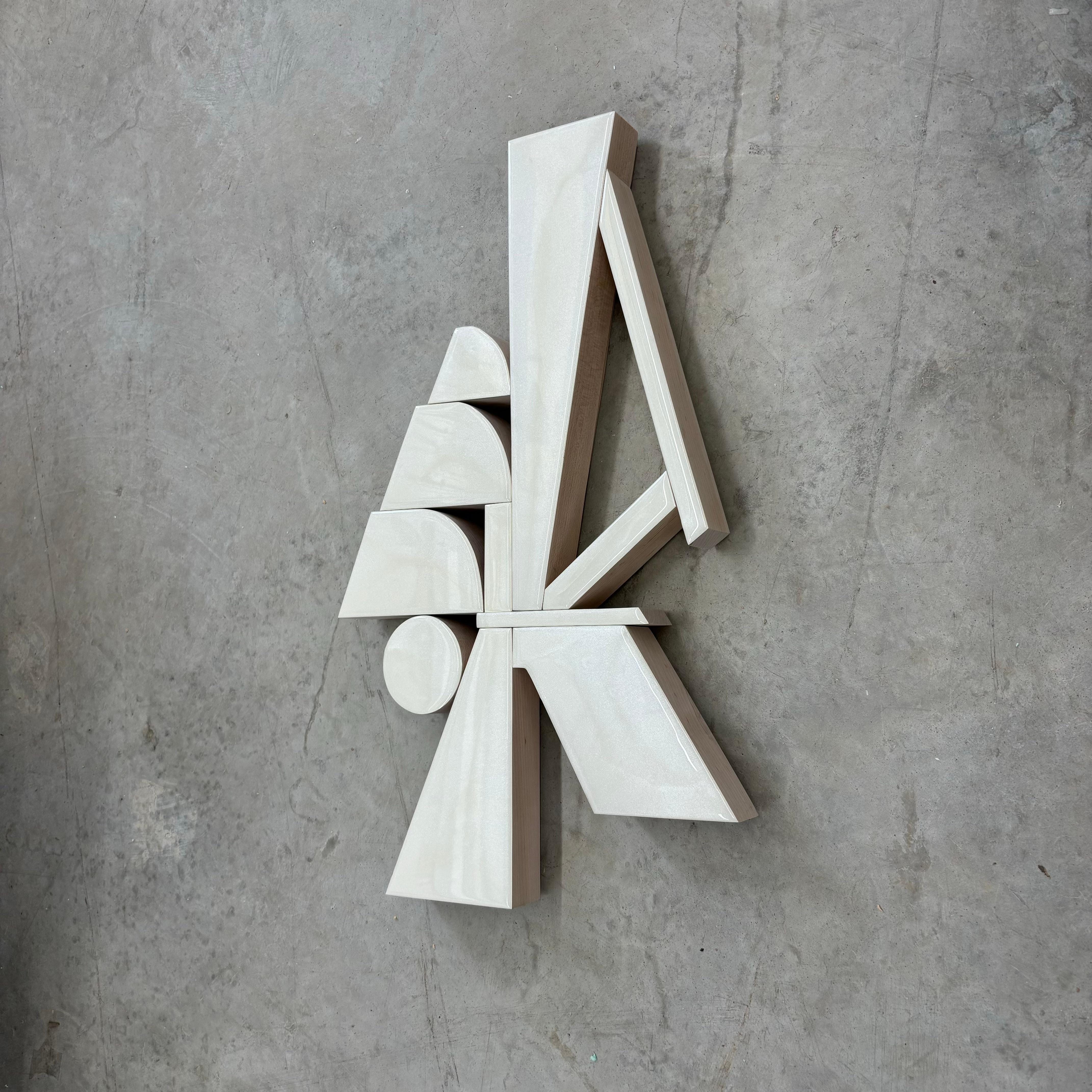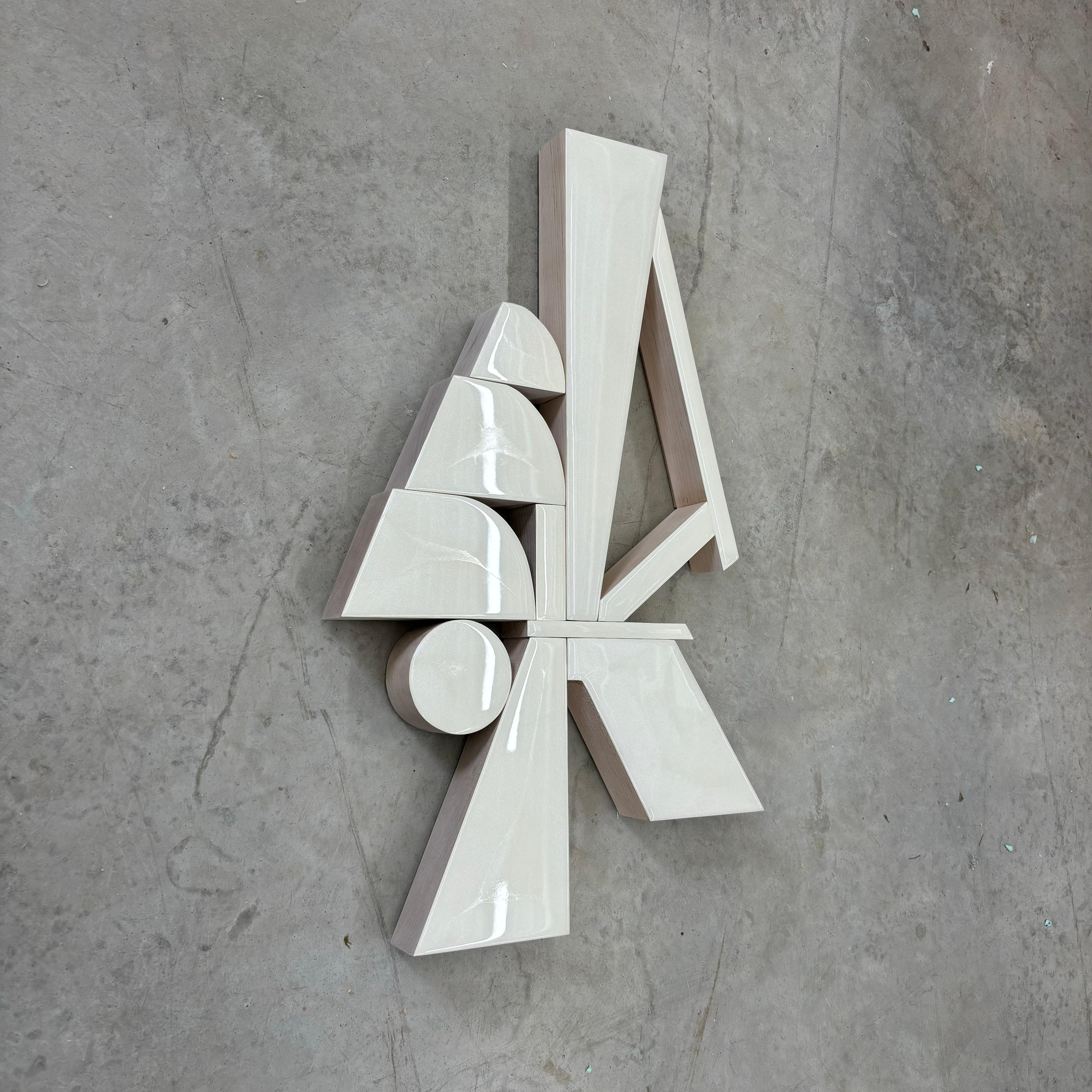 Scott Troxel"Navarro" Escultura de pared-madera, minimalismo, moderno de mediados de siglo, blanco, monocromo2024