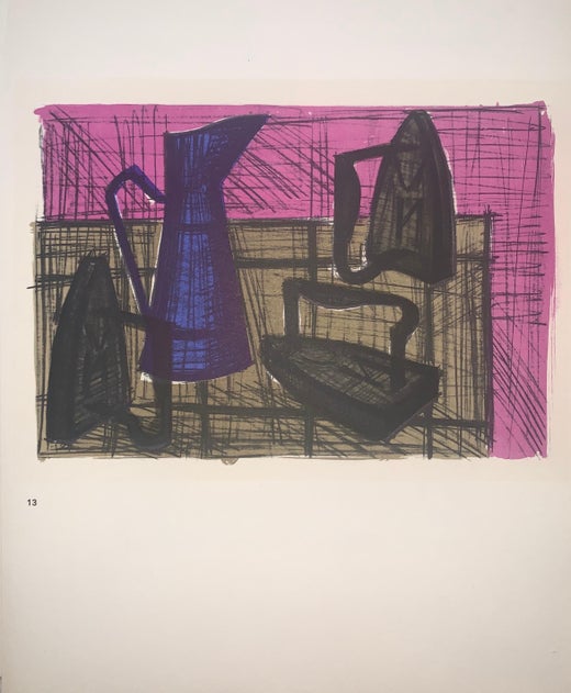 This exquisite lithograph by Bernard Buffet (1928–1999), titled Nature morte avec une bouteille (Still Life with a Bottle), originates from the 1967 album Bernard Buffet, Lithographs...