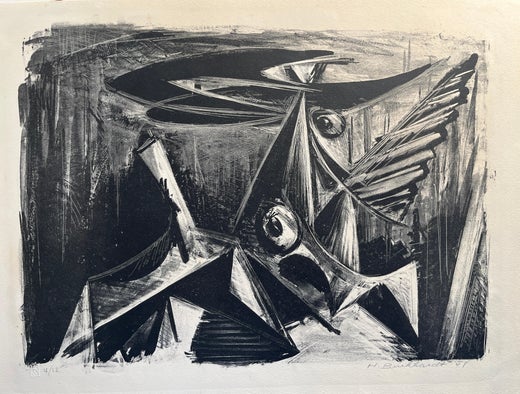 Hans Gustav Burkhardt fue un artista expresionista abstracto suizo-estadounidense. Nació el 20 de diciembre de 1904 en Basilea. Los cuadros de Burkhardt de los años 30 forman parte de la génesis del expresionismo abstracto estadounidense. Se trasladó a Los Ángeles en 1937 y representó el puente más importante entre Nueva York y Los Ángeles. Trajo consigo muchas de las ideas incipientes de la pintura expresionista abstracta que habían estado pululando entre los artistas de Nueva York, entre los que destacaban Arshile Gorky y Willem de Kooning. Trabajando de forma independiente en Los Ángeles, el enfoque de investigación experimental de Burkhardt fue paralelo y, en muchos casos, se anticipó al desarrollo del arte moderno y contemporáneo en Nueva York y Europa. Su papel único como importante pintor estadounidense se ve reafirmado por el constante interés y la continua reevaluación de su obra. En 1992, la Academia Americana de las Artes y las Letras le concedió el Premio a la Trayectoria Profesional. Sus obras se exponen en numerosos museos, como el Museo Británico, el Museo Metropolitano de Arte, el Museo Whitney de Arte Americano, el Museo de Arte Contemporáneo de Los Ángeles y el Museo Norton Simon. Burkhardt murió el 22 de abril de 1994 en Los Ángeles.