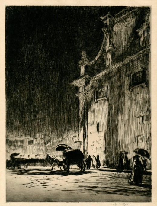 Noche, Dieppe. 1926-27. Punta seca. Appleby 123. 7 7/8 x 11/ Edición 100. Una fina impresión sobre papel verjurado crema con márgenes completos. Firmado a lápiz. Presentado en un pas...